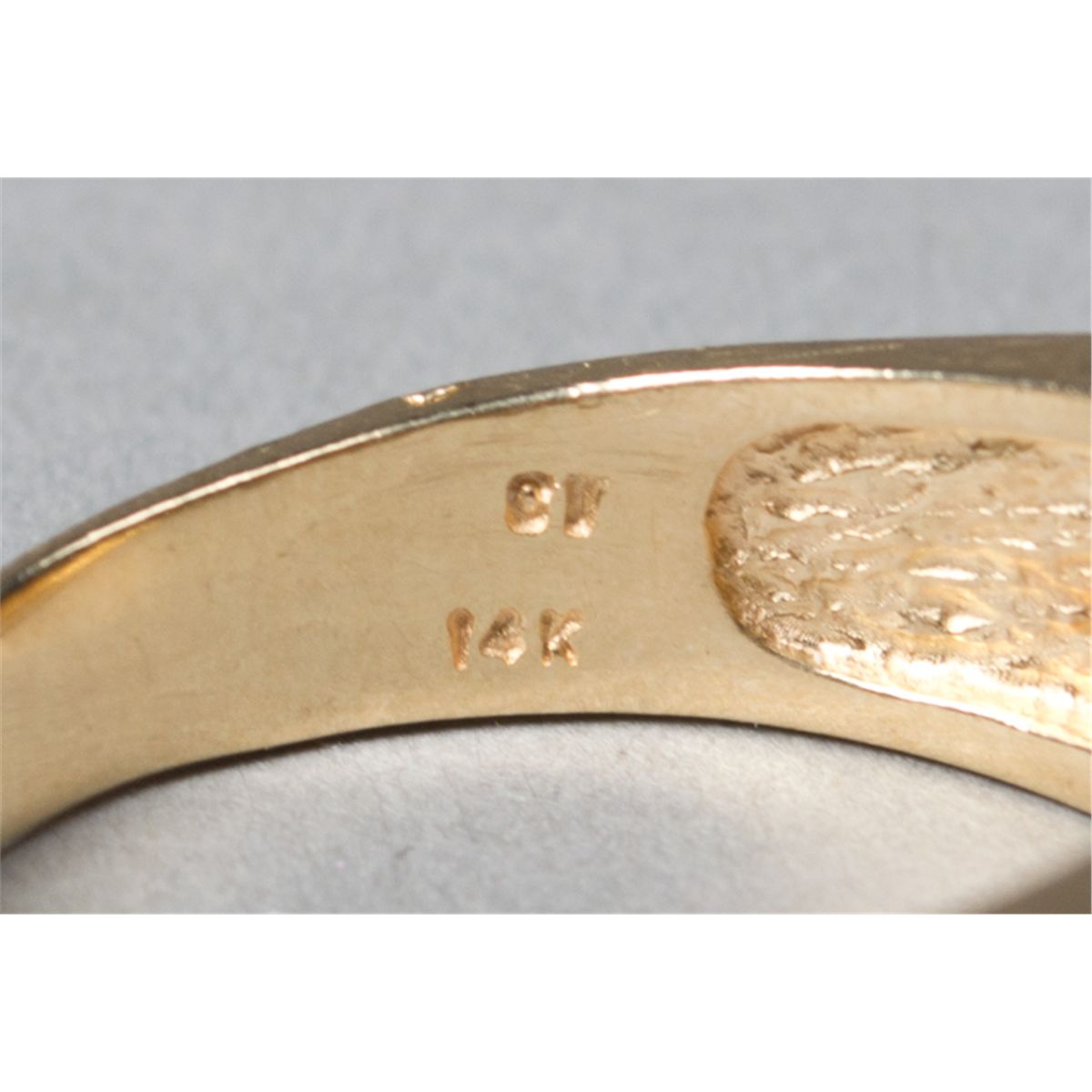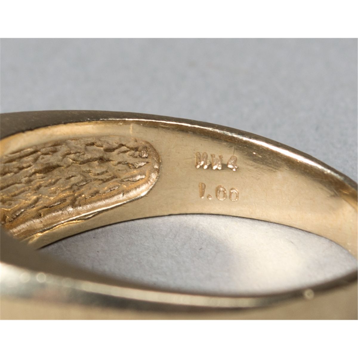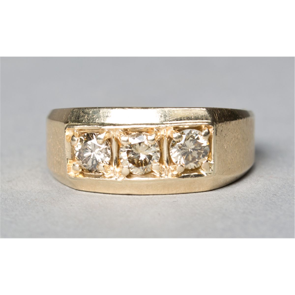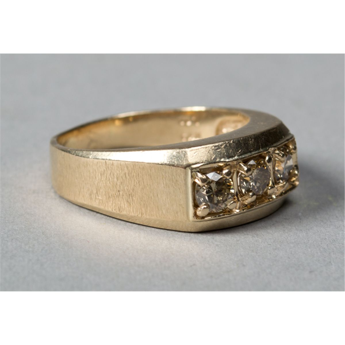 Size 10.5, with three round cut champagne diamonds, 1 ct. 8 grams TW. Private collection Attica, MI.