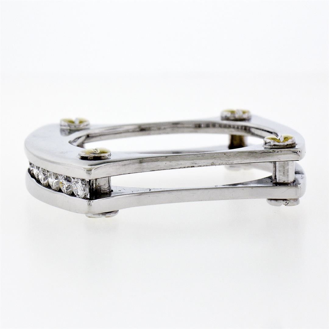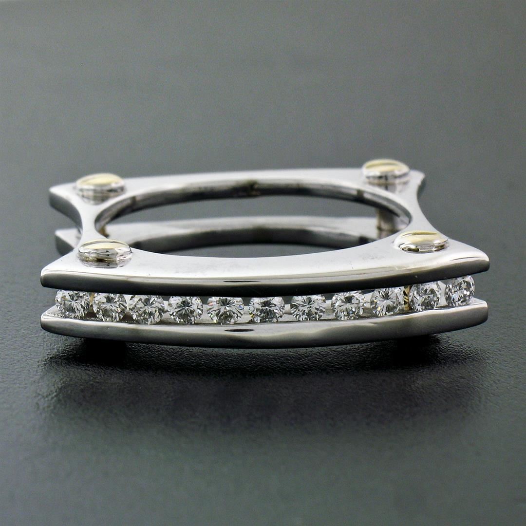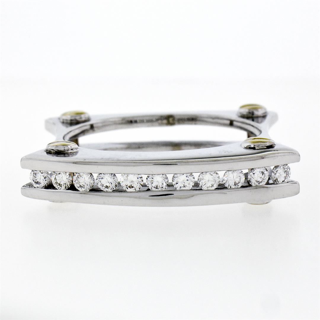 Men's 14K TT Gold 0.60ctw Channel Round Diamond Open Squared Layered Band Ring. Please see photos and description for all available information. A new solid 14k yellow and white gold squared layered band ring, featuring 11 round brilliant cut natural diamonds (F/G - VS1/VS2; 0.60ctw). The ring is size 10.0, weighs a total of 10.60 grams, and measures 4.90mm wide.