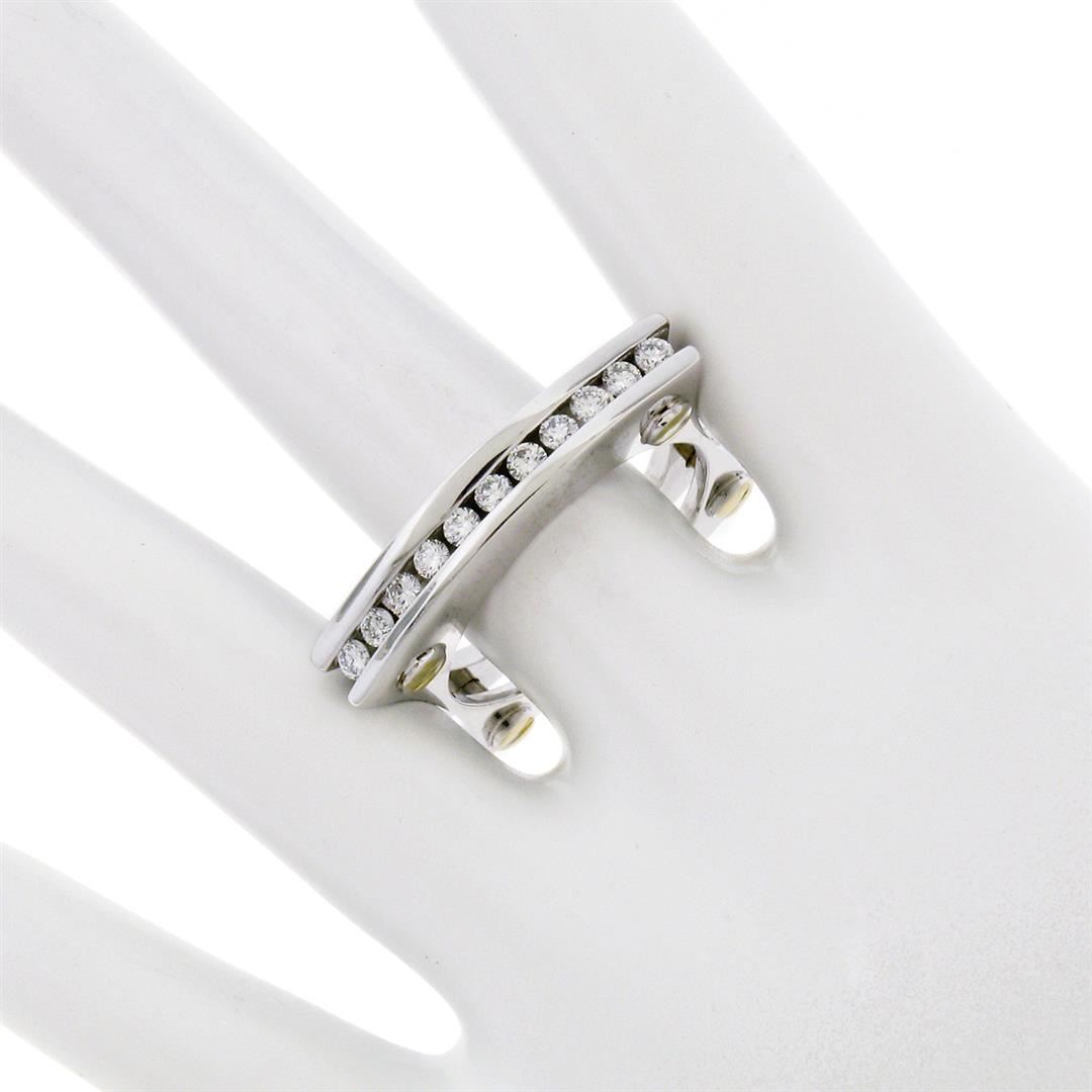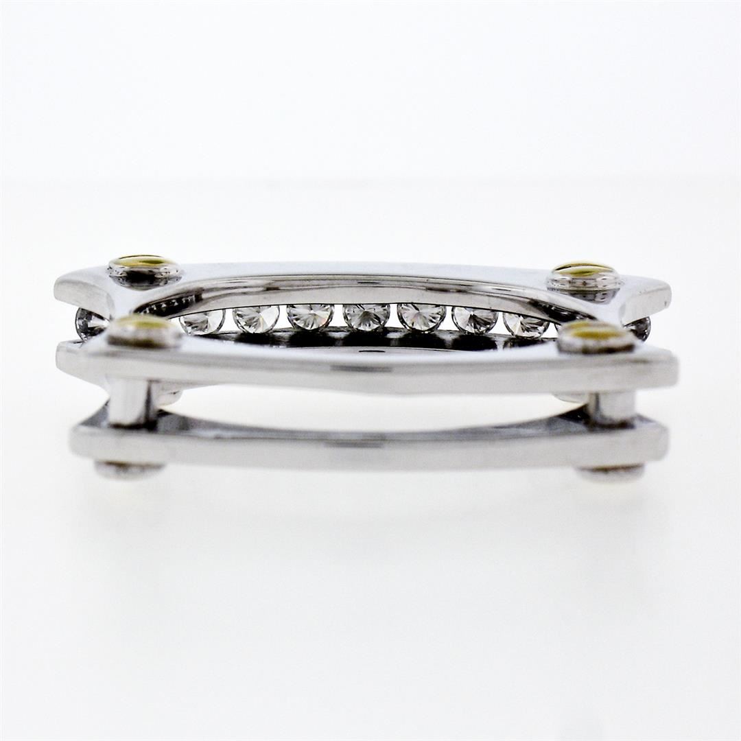 Men's 14K TT Gold 0.60ctw Channel Round Diamond Open Squared Layered Band Ring. Please see photos and description for all available information. A new solid 14k yellow and white gold squared layered band ring, featuring 11 round brilliant cut natural diamonds (F/G - VS1/VS2; 0.60ctw). The ring is size 10.0, weighs a total of 10.60 grams, and measures 4.90mm wide.