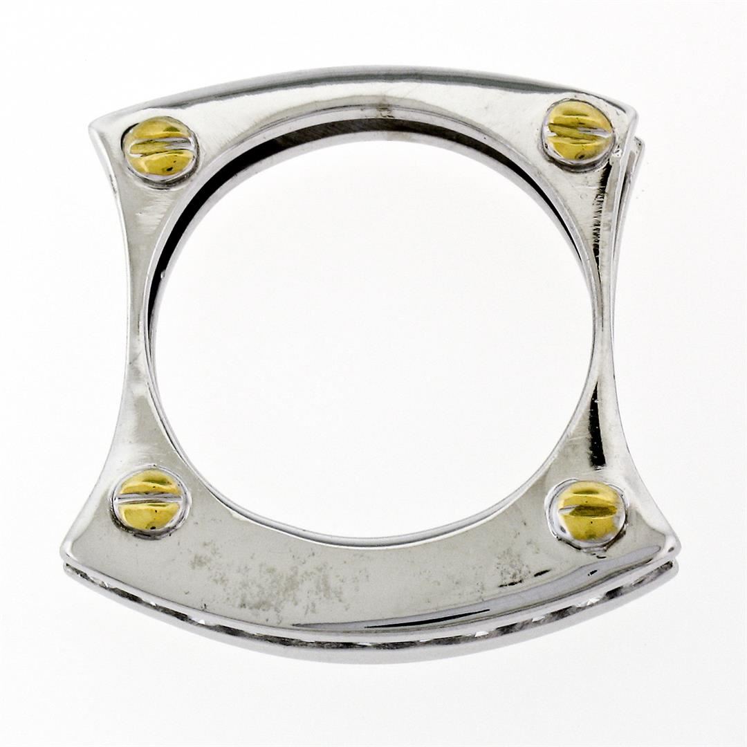 Men's 14K TT Gold 0.60ctw Channel Round Diamond Open Squared Layered Band Ring. Please see photos and description for all available information. A new solid 14k yellow and white gold squared layered band ring, featuring 11 round brilliant cut natural diamonds (F/G - VS1/VS2; 0.60ctw). The ring is size 10.0, weighs a total of 10.60 grams, and measures 4.90mm wide.