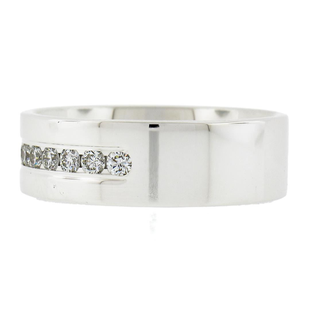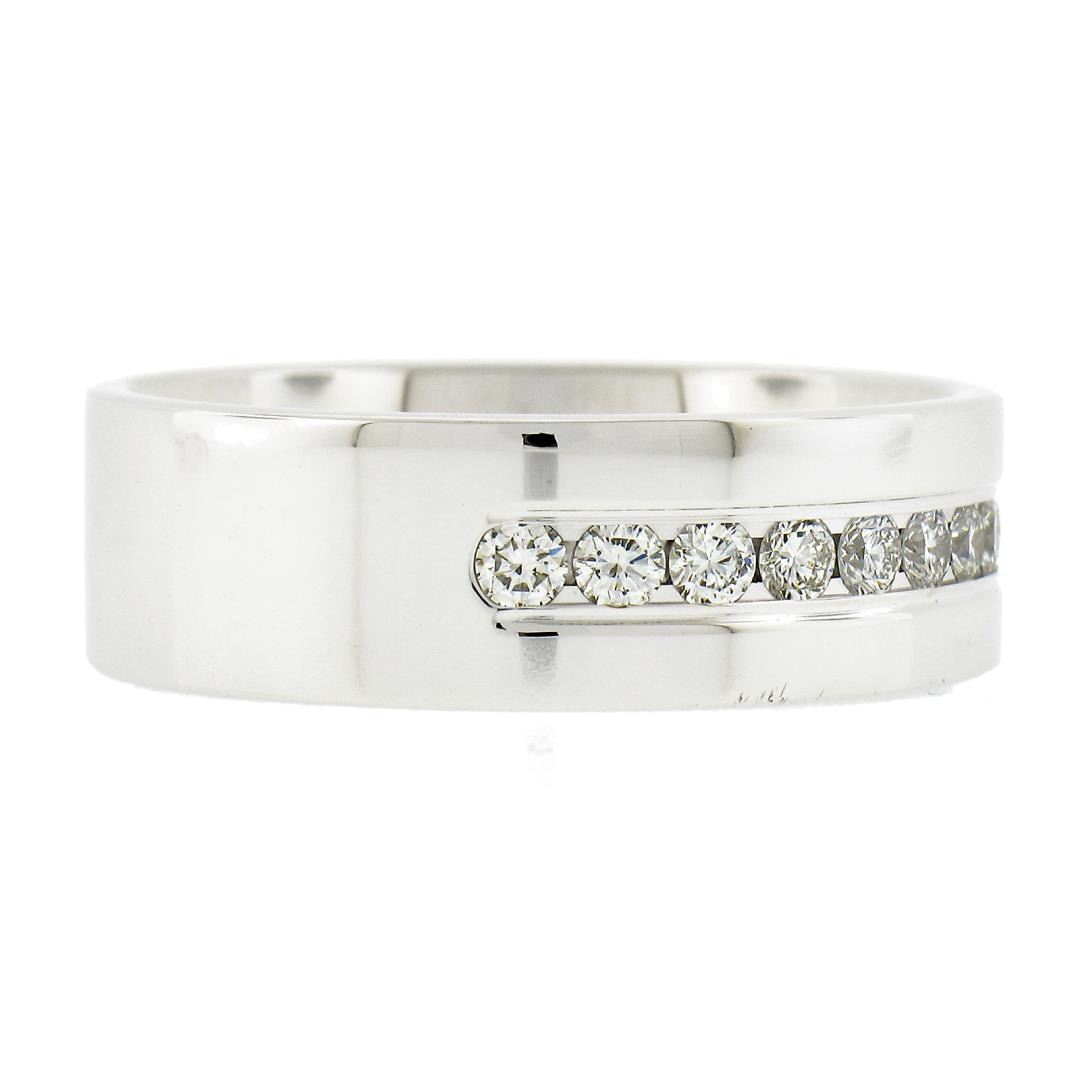 Men's 14K White Gold 0.60 ctw Round Brilliant Cut Channel Set Diamond Band Ring