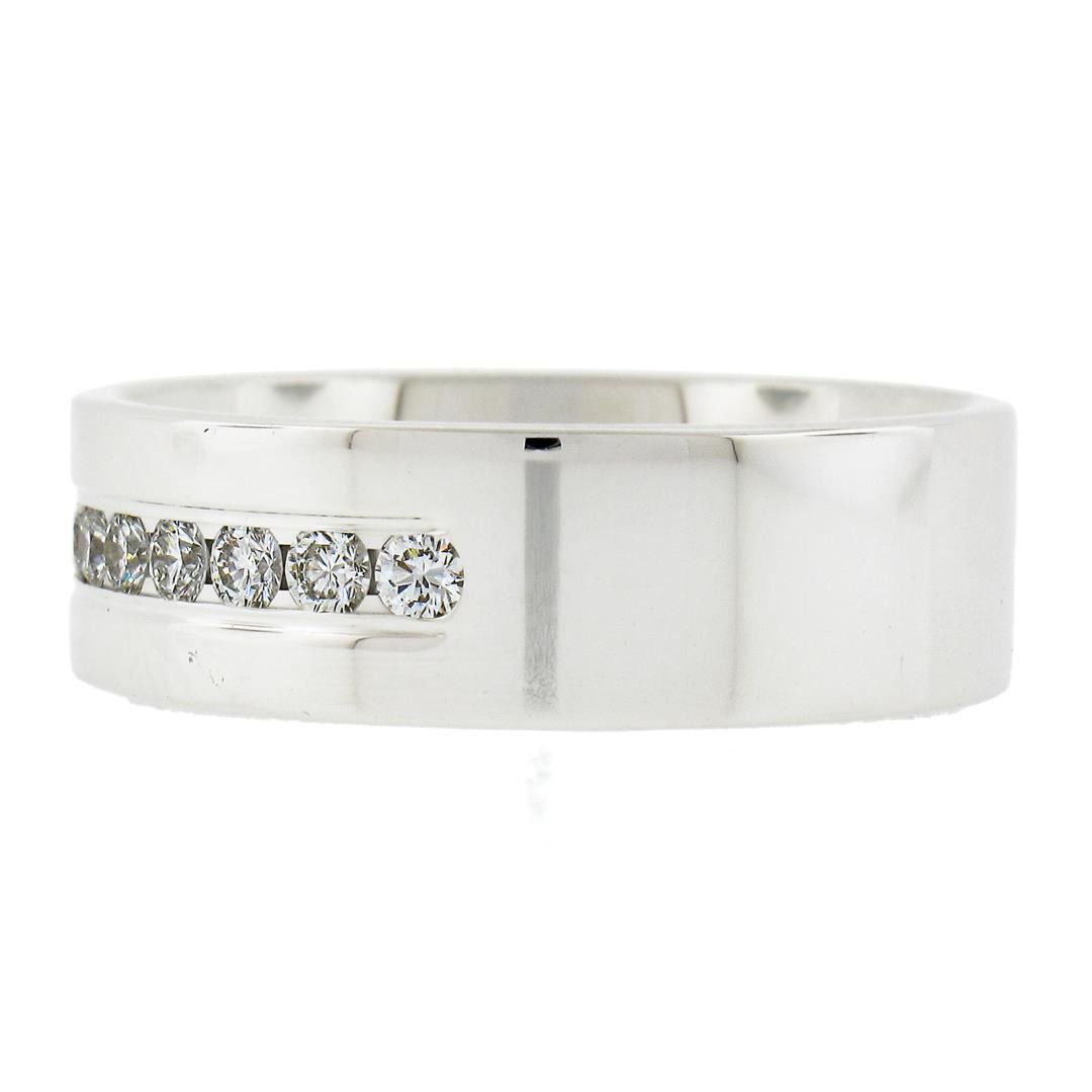 A solid 14k white gold band ring, with 12 round cut natural diamonds (F/G - VS1/VS2 ; 0.60ctw). The ring is size 12.5, weighs a total of 12.45 grams, and measures 7.9mm wide.