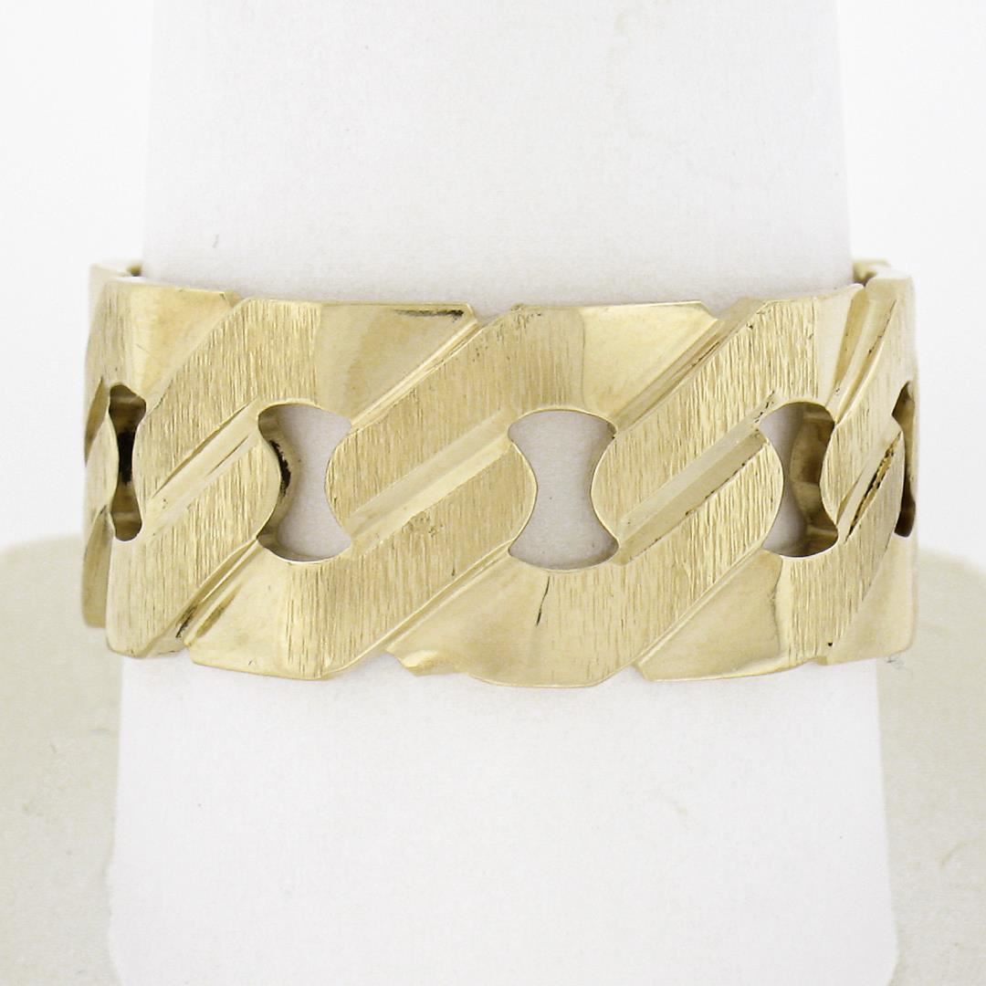 A solid 14k yellow gold open curb link men's band ring. The ring is size 10.0, weighs a total of 7.82 grams, and measures 10mm wide.