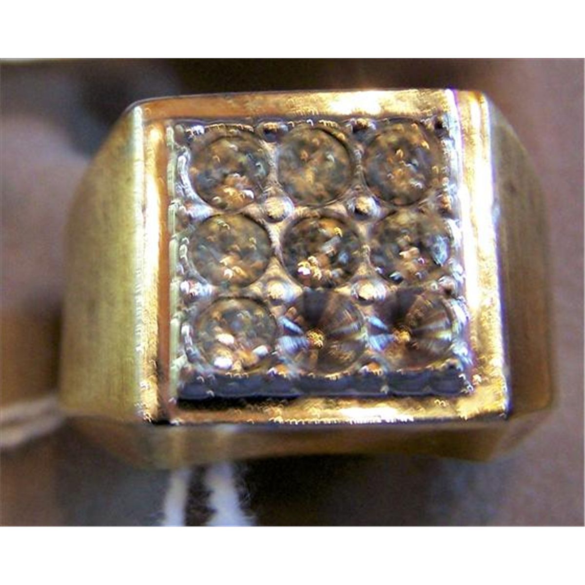 Men's 14Kt Gold Ring with 8 Diamonds 1 lose, 1 missing total weight 17.526 g
