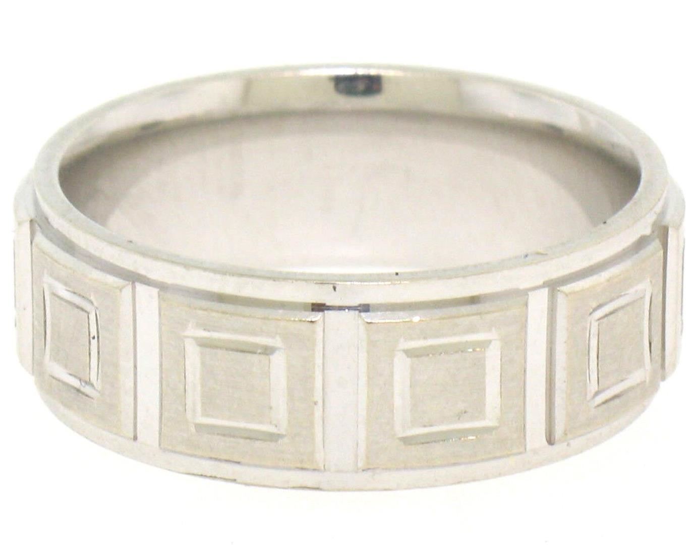 Men's 14k Solid White Gold Comfort Fit Dual Finish Coffered Band Ring Size 7. Please see photos and description for all available information. An estate solid 14k white gold coffered band ring, The ring is size 7.0, weighs a total of 8.30 grams, and measures 6.99mm wide.