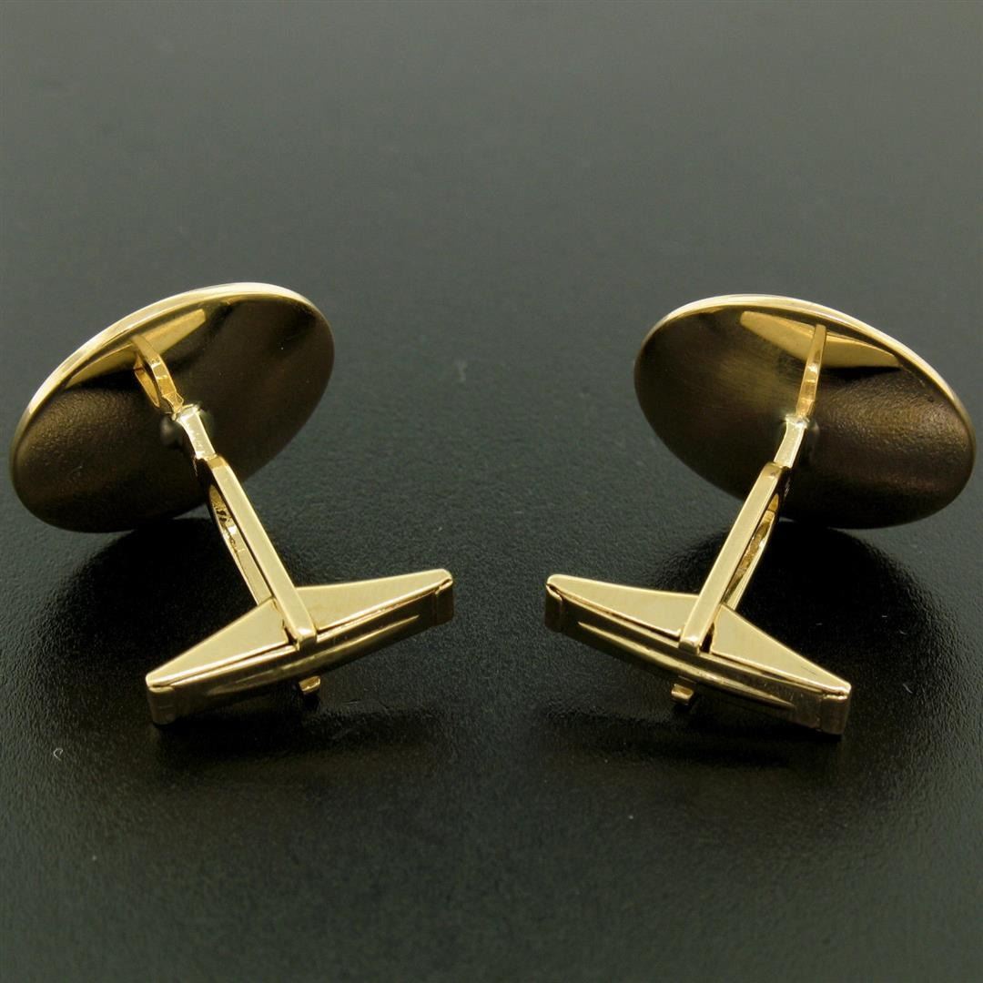 An estate 14k yellow gold concave swirl cufflinks, These cuff links have a swivel design with a clearance of 14.50mm, weigh a total of 11.1 grams, and the front panels measure 19.92mm in diameter.
