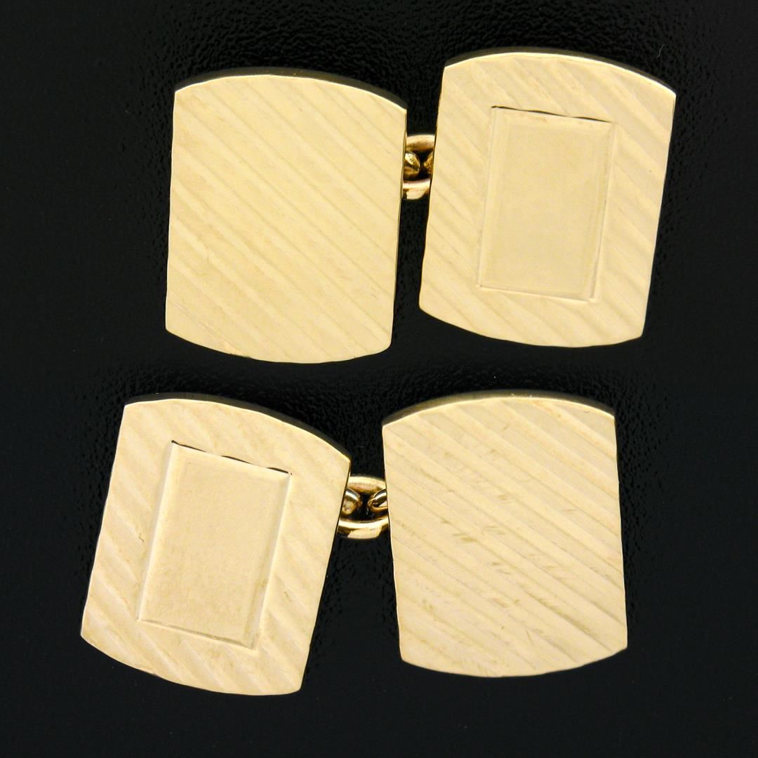 A solid 14k yellow gold cufflinks. These cuff links have a chain link design with a clearance of 16mm, weigh a total of 10.56 grams, and the front panels measure 17.1x11.4mm.