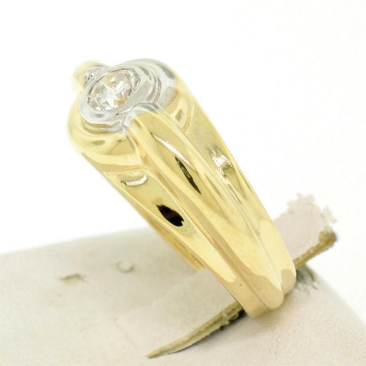 Men's 14kt Yellow and White Gold 0.40 ctw Bezel Round Diamond Solitaire Band Rin