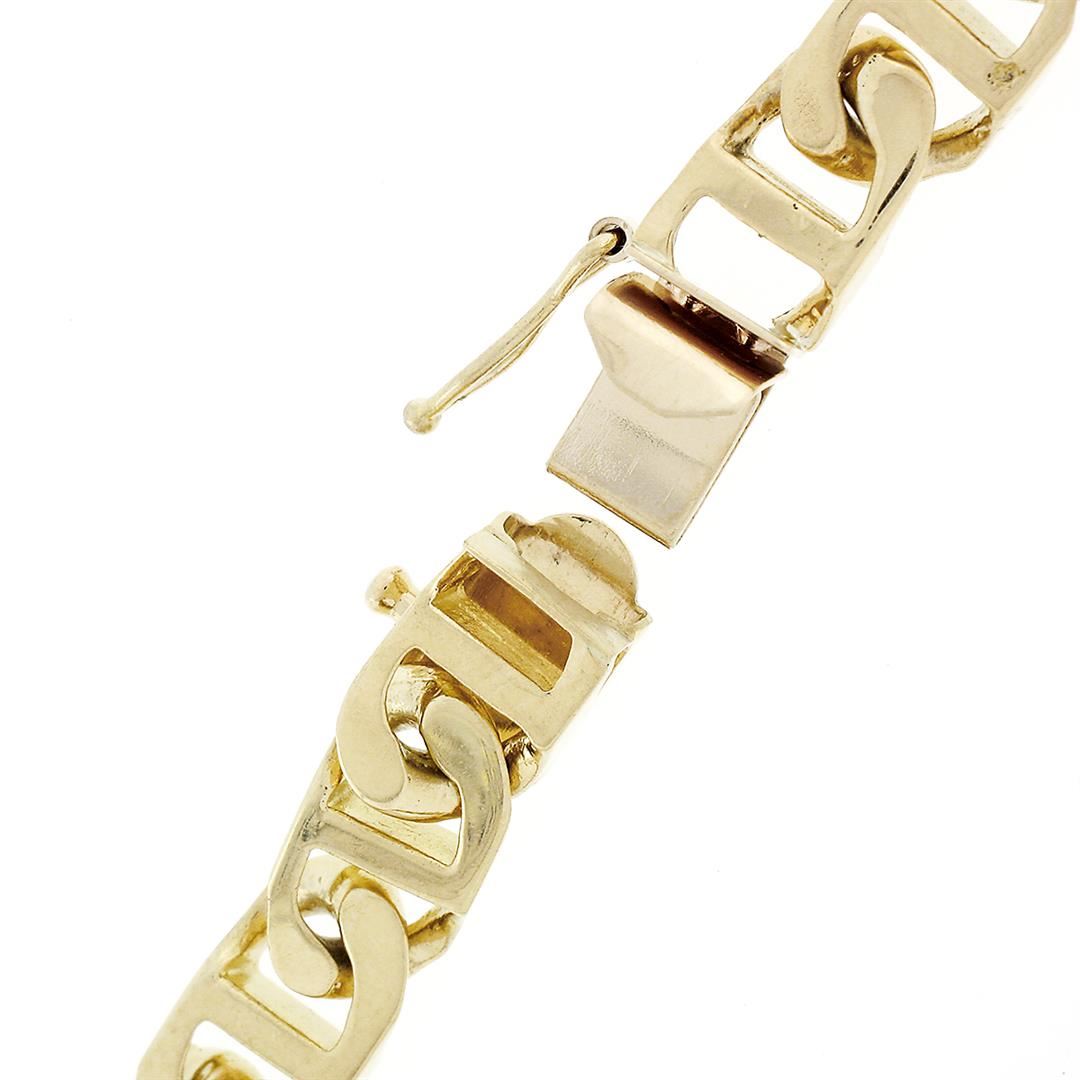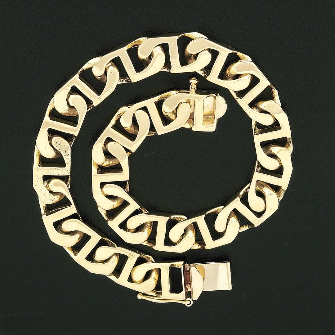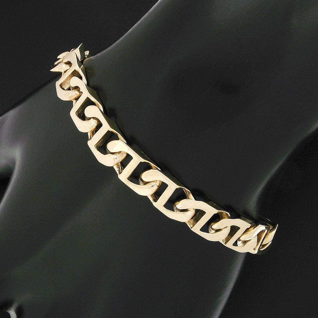 A solid 18k yellow gold Gucci Mariner link chain bracelet. It weighs a total of 28.21 grams, measures 7.1mm wide, and measures 7 inches in length.