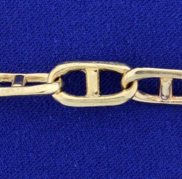 This bracelet is 14K yellow gold and is 9 1/2 inches long, 8mm thick, and has a lobster clasp. 25.2