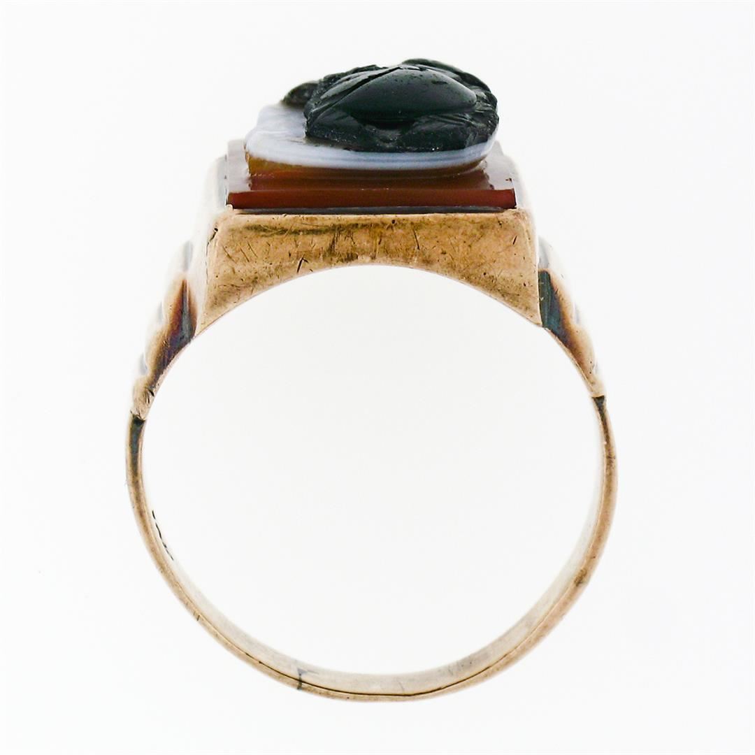Men's Antique Victorian 10k Gold Carved Trojan Agate on Carnelian Cocktail Ring