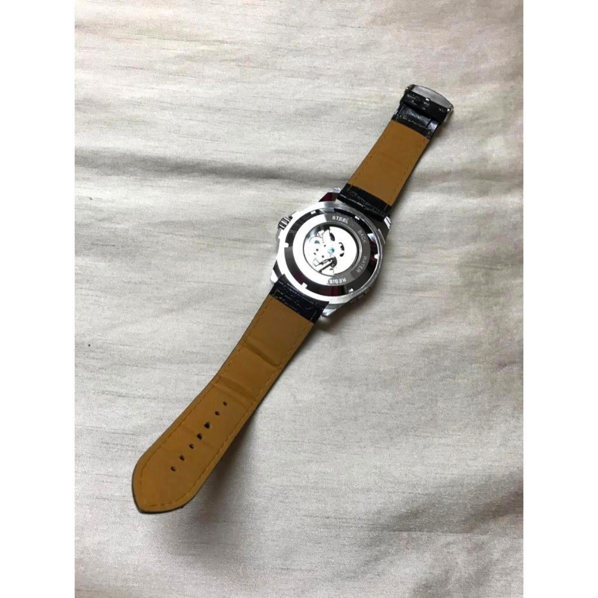 Men's Automatic Tachymeter Sports wristwatch, stainless steel back, water-resistant, Winner brand, with faux leather strap