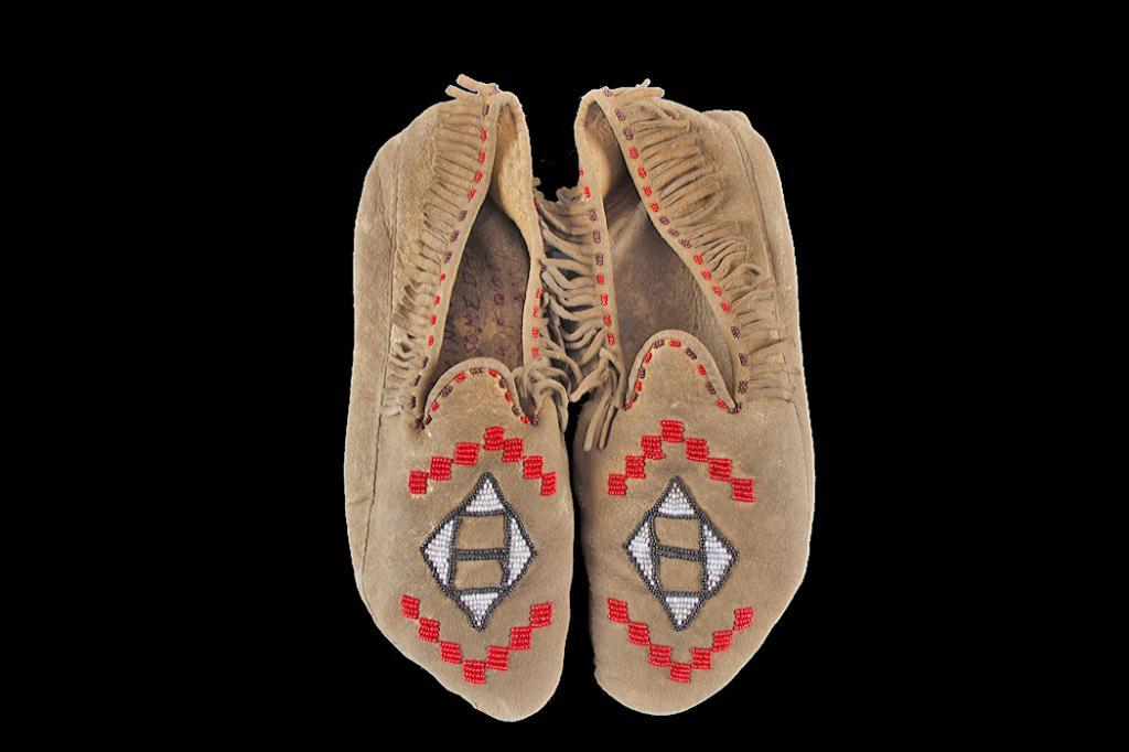 Men's Blackfoot Moccasins Fringed with beaded diamond design.Fringed with beaded diamond design.