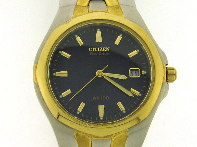 This is a Men's Citizen Eco Drive Watch in Two Tone Stainless Steel with the following features: Screw-Back Case; Stainless Steel Two-Tone; Safety Fold Over Clasp with Push Button; 36 mm Case; Japan movement; and Never Needs a Battery.