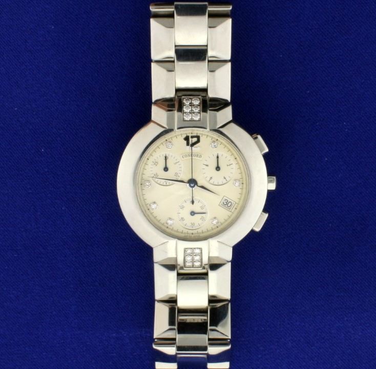 In stainless steel, watch is model 14.C5.1891.S and is in excellent working condition with new battery. All chronograph functions work properly. No scratching on crystal and very minimal signs of wear on bracelet and bezel. Contains 1/2ct of high quality diamonds.