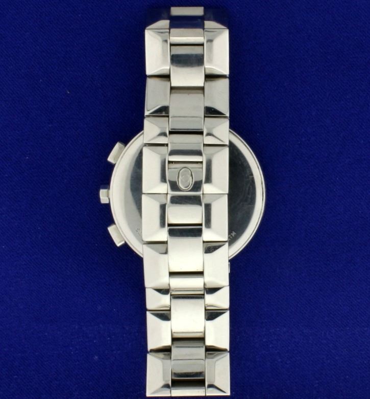 In stainless steel, watch is model 14.C5.1891.S and is in excellent working condition with new battery. All chronograph functions work properly. No scratching on crystal and very minimal signs of wear on bracelet and bezel. Contains 1/2ct of high quality diamonds.