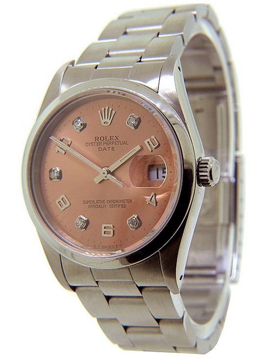 Dial Original Face Professionally Custom Refinished to Metallic Salmon with Custom Added Genuine Diamonds