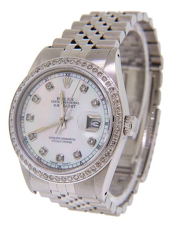 Dial Original Rolex Face , Professionally Custom Refinished with Custom added White Mother of Pearl Face and Genuine Diamodns