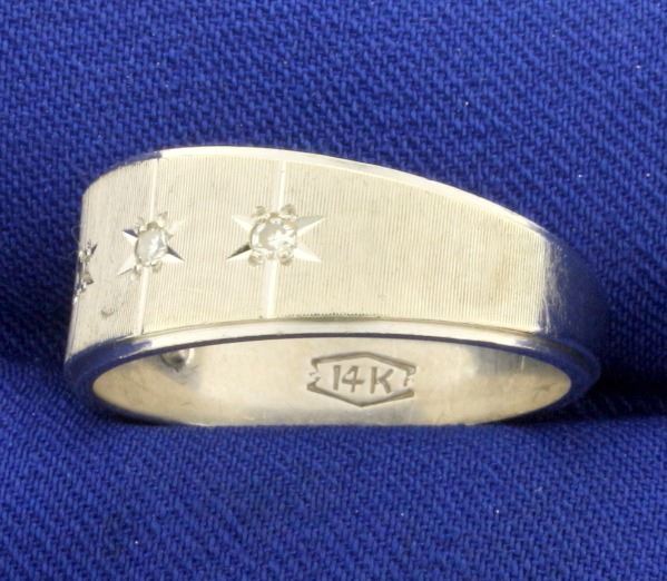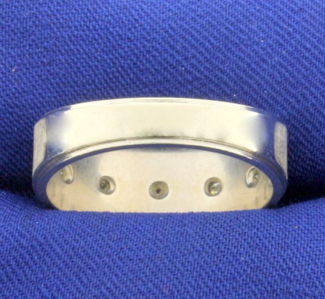 In 14k white gold. Contains five high quality .03ct diamonds, VS clarity/G color. Size 11. 7.3g.