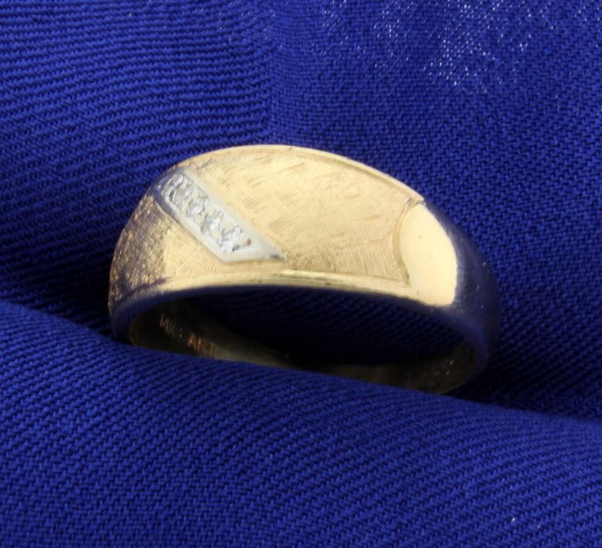 In 14K yellow and white gold and contains five .01ct diamonds. Size 10 1/2 7.6g