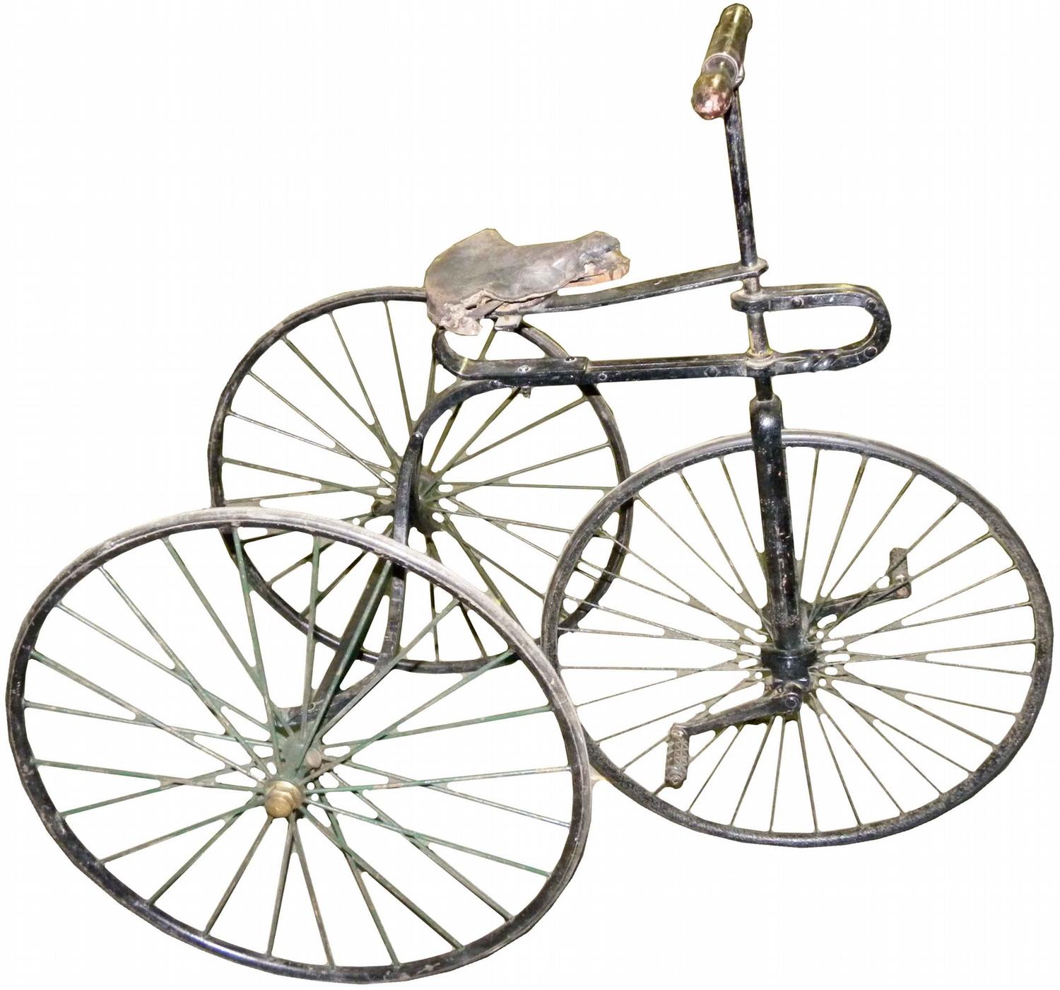 Men's Early Heavy Duty Tri-cycle. Ca. 1860's forged iron. Very good original condition. 26 X 44 X 48 inches.