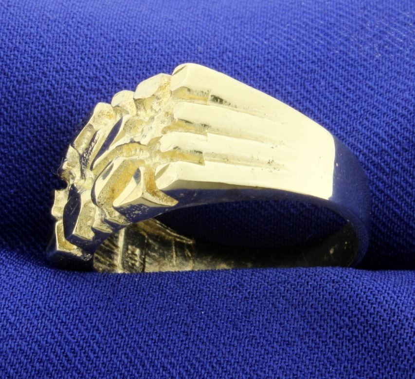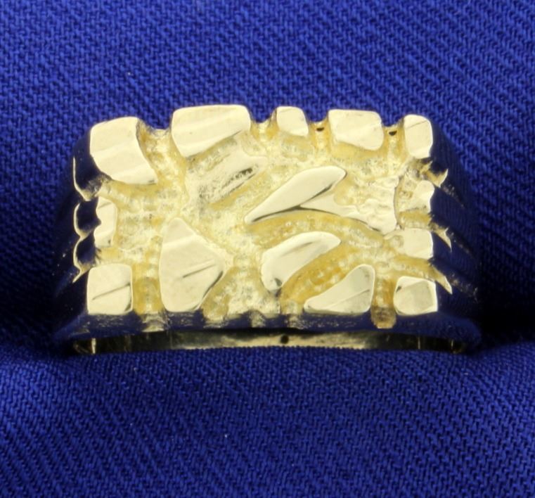 The ring is 10K yellow gold and is a size 12. 5.2g