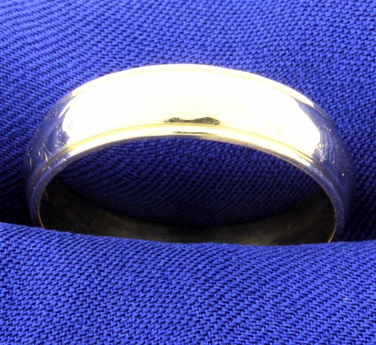 In 14K yellow gold, the band is 6mm wide and is a size 12 3/4 7.0g