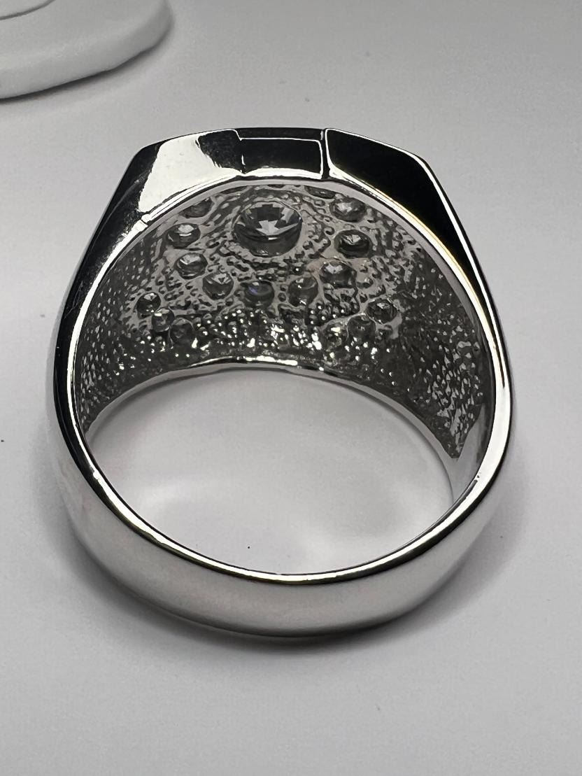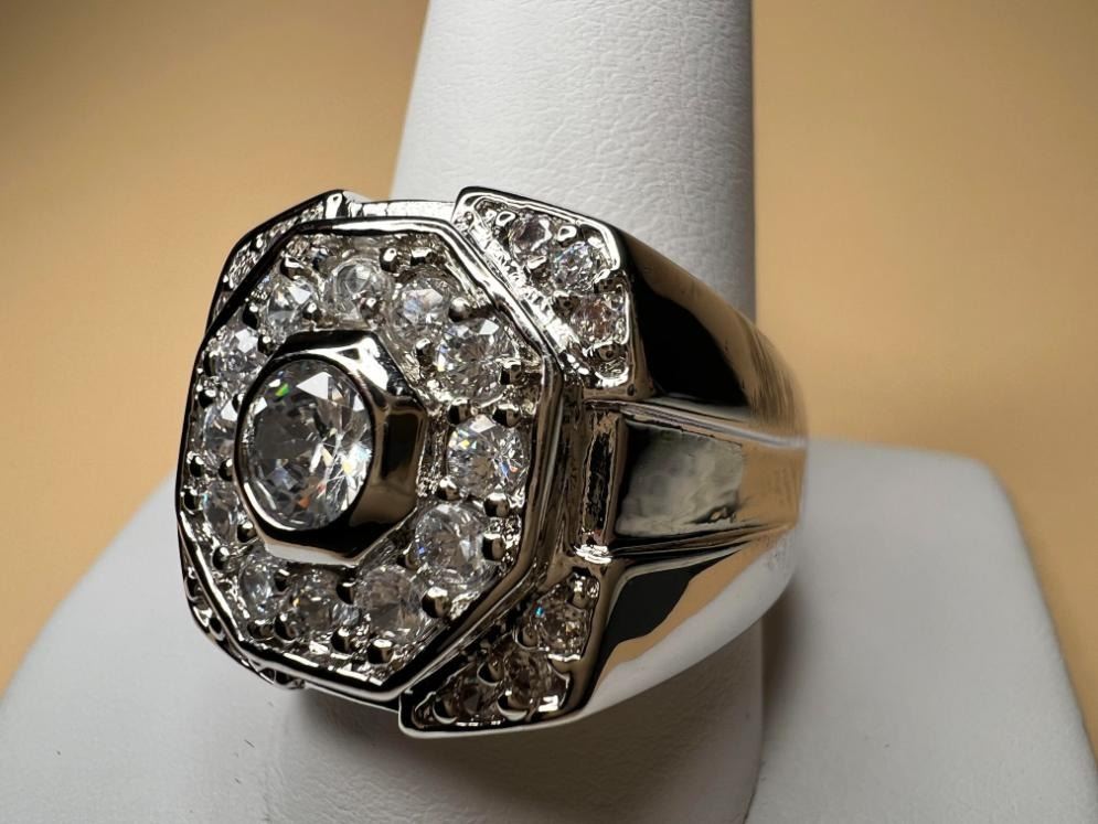 One Men's Sparkling 7.25 Cttw Lab Simulated Diamond Ring. ***This Ring is Well Made With Strong Detail! A-1 Quality. These Sparkling Gemstones are all VVs1 Near Flawless and mounted in Rhodium Over Solid .925 Silver.*** Rhodium is in the platinum family and gives this ring it's high polish and shine. It is also tarnish resistant. Size 11. Total gram Wt is approx 11.2 total grams. This Ring Is Incredible. Don't Miss It!