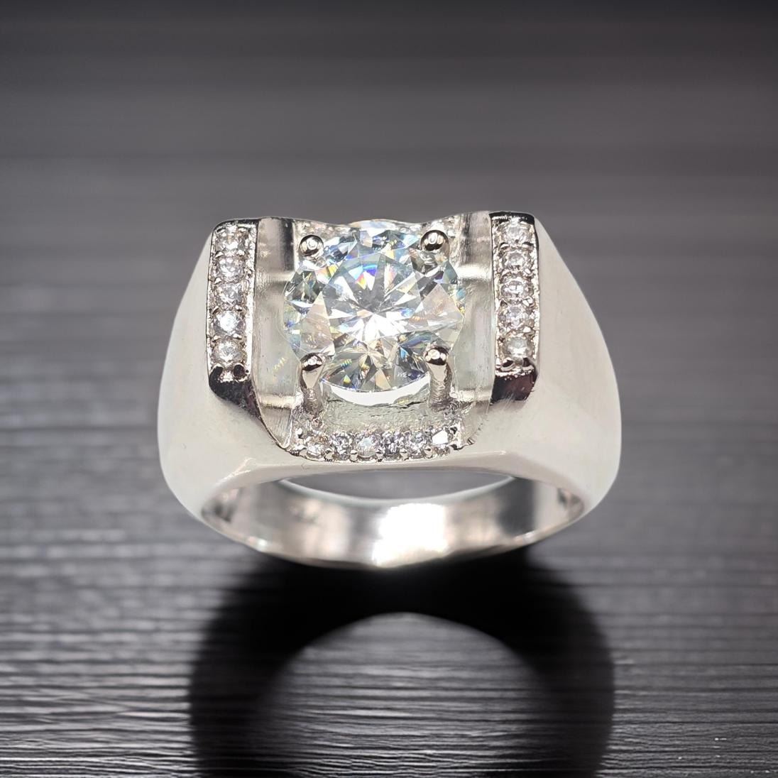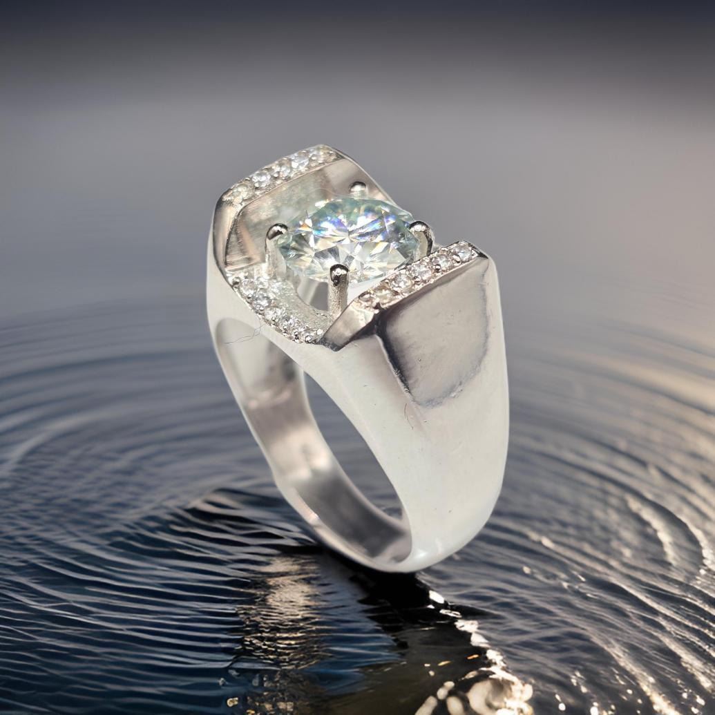 Men's Huge Sparkling 3.45 Ct Fire Moissanite Ring
