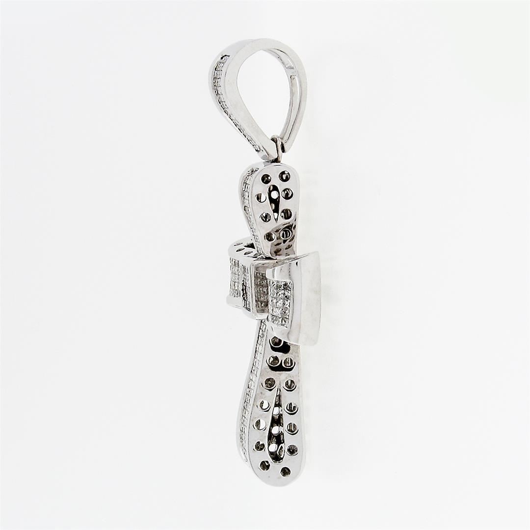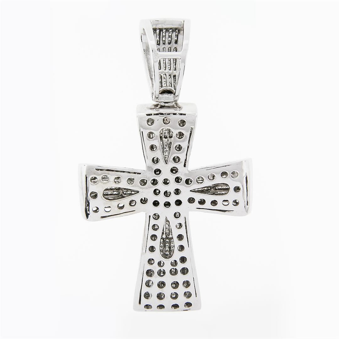 A solid 14k white gold large cross pendant, with 376 princess cut natural diamonds (H/I- VS2/SI2; 11.28ctw). The pendant weighs a total of 55.80 grams, measures 83.3x47.8mm including the bail, and the inside of the bail measures 15.1x11.6mm.