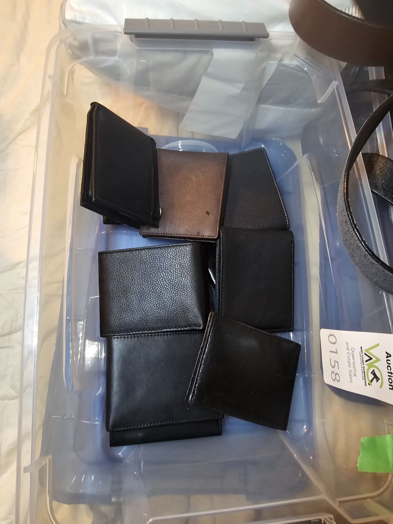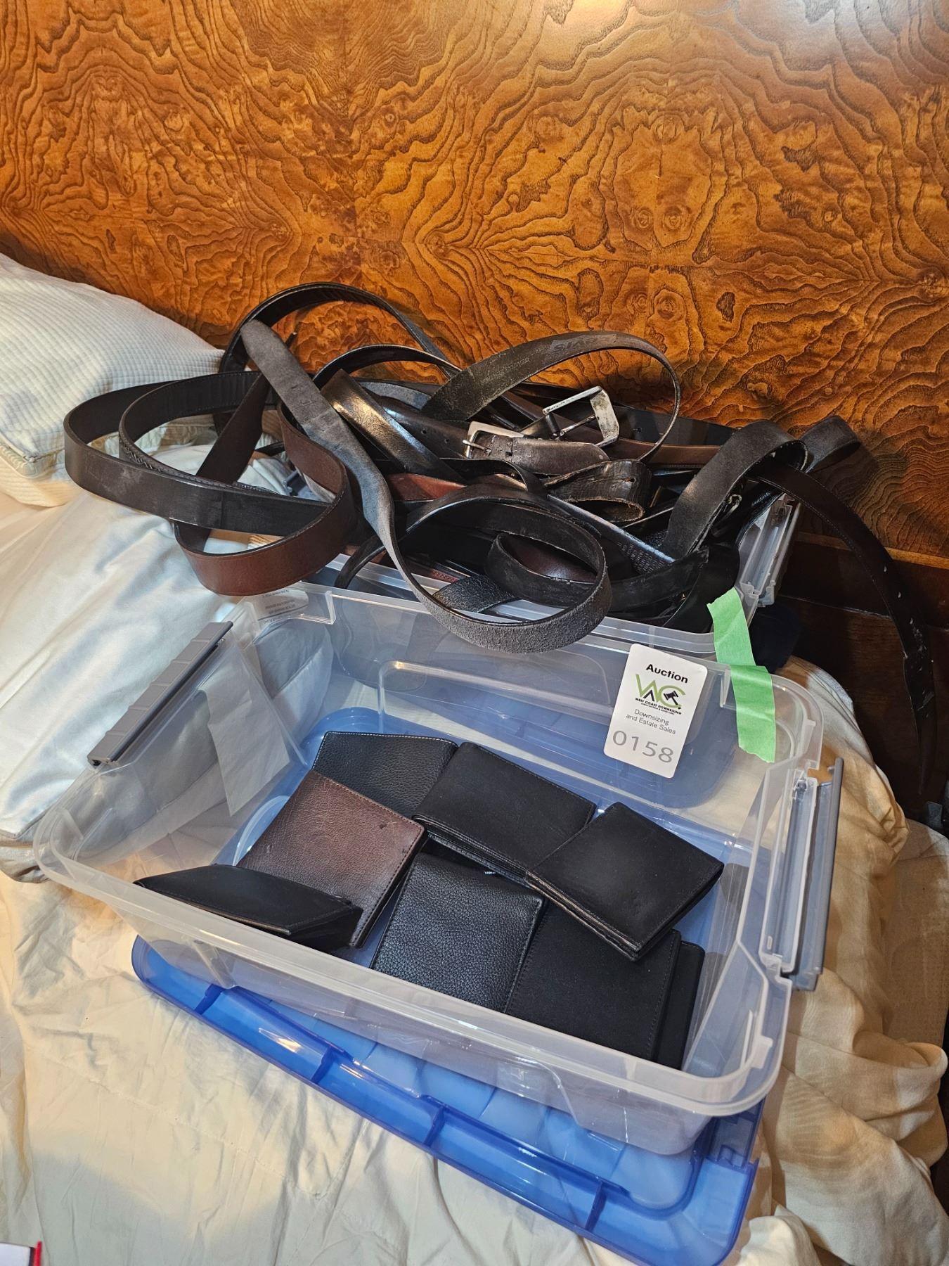 Assortment of men's leather wallets and belts size xxl. Pickup at 9 am