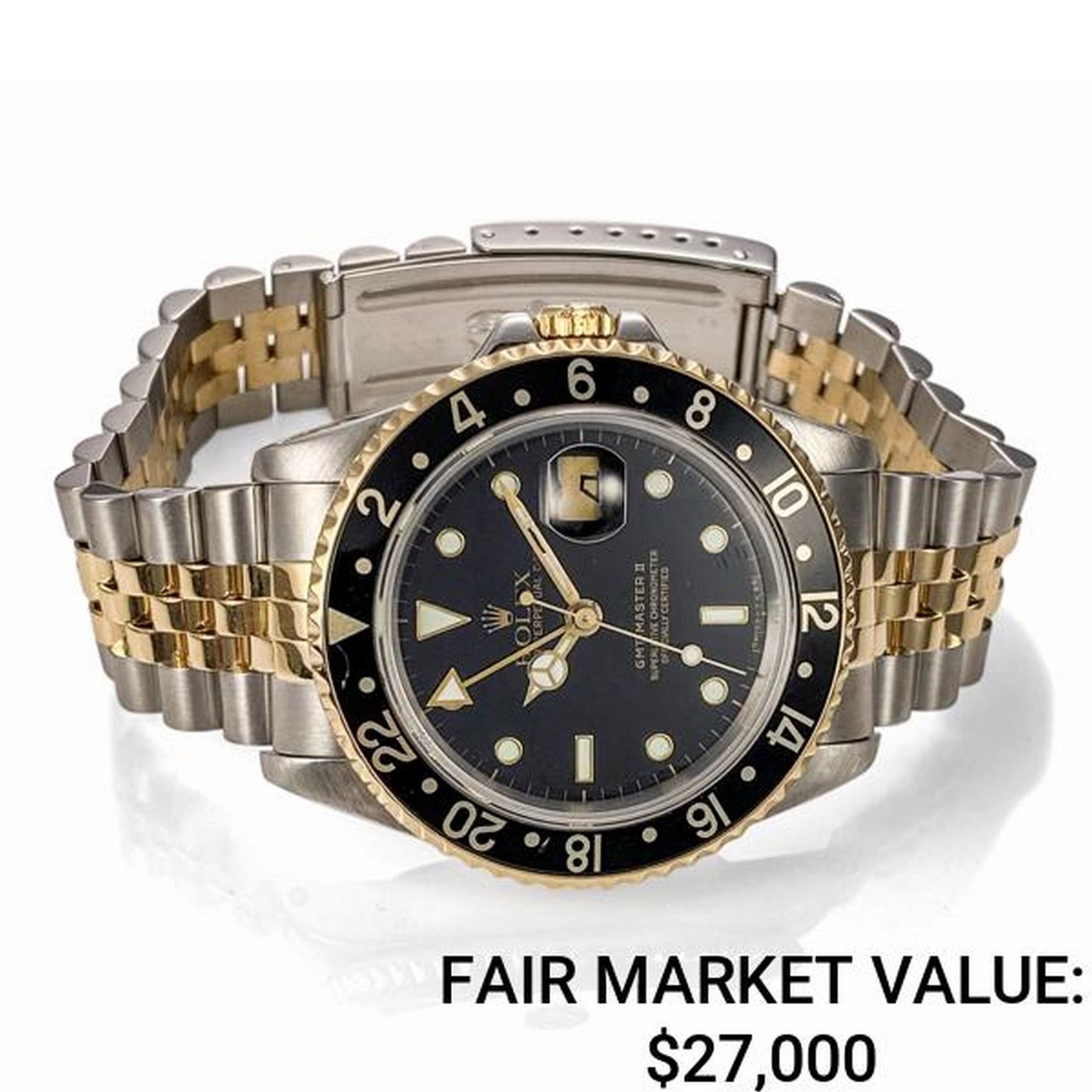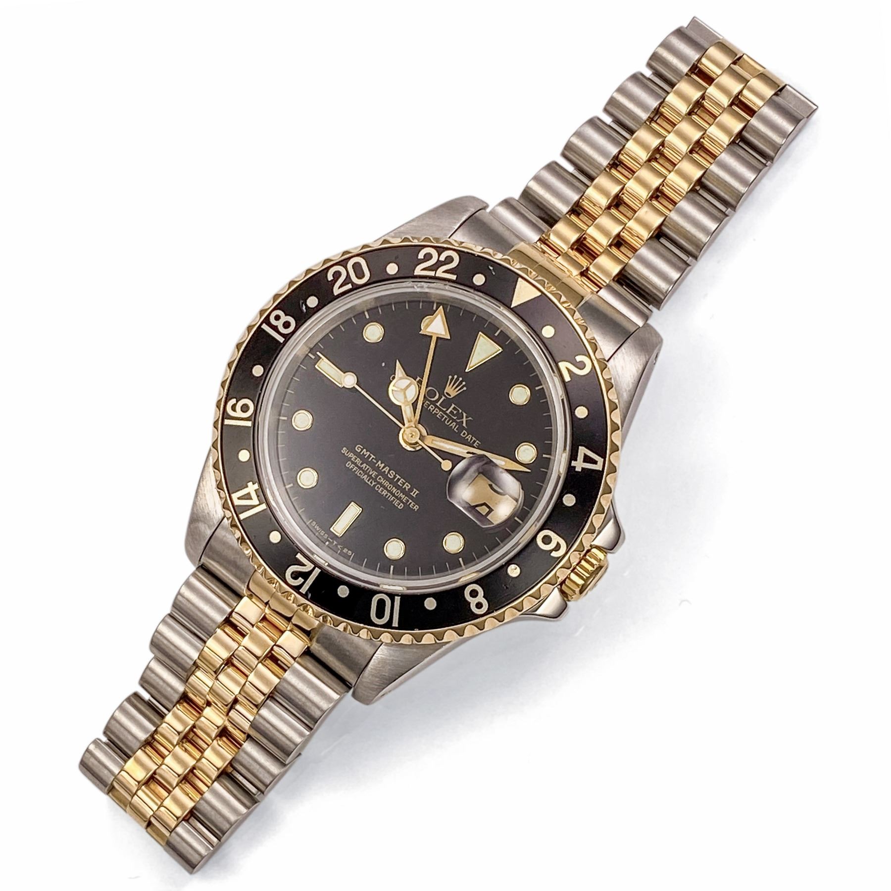 Men's Rolex GMT Master II SS & 18k Gold w/ Black Dial