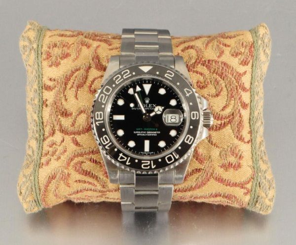Working condition. With appraisal: "One men's stainless steel Oyster Perpetual Date Rolex Watch. Model #116710. Serial #V754008. Approx. Appraised Value: $9,200.00".