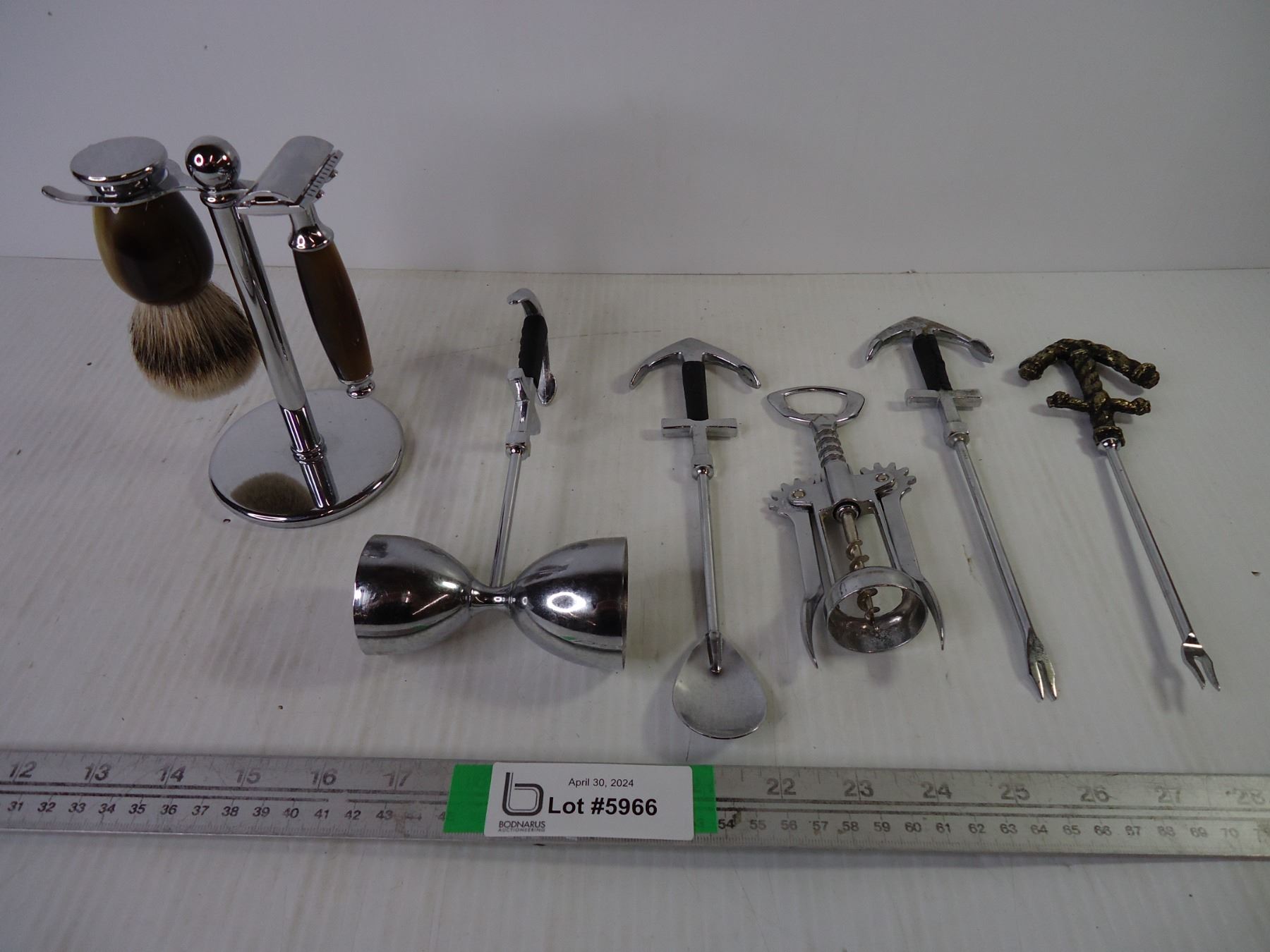 Men's Shaving Set and (5) Pieces of Barware