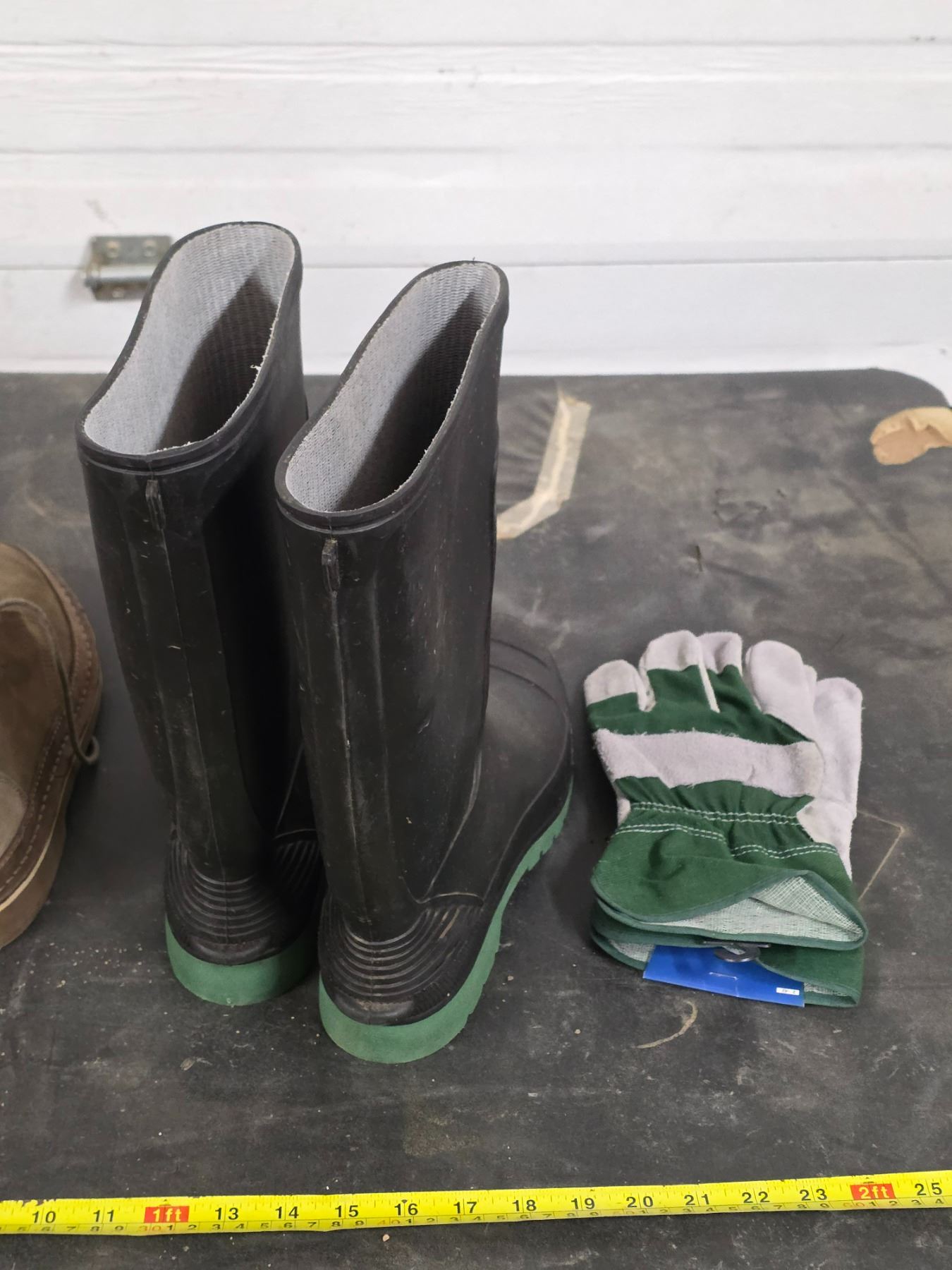Men's Shoes size 12, Rubber boots size 12, gloves