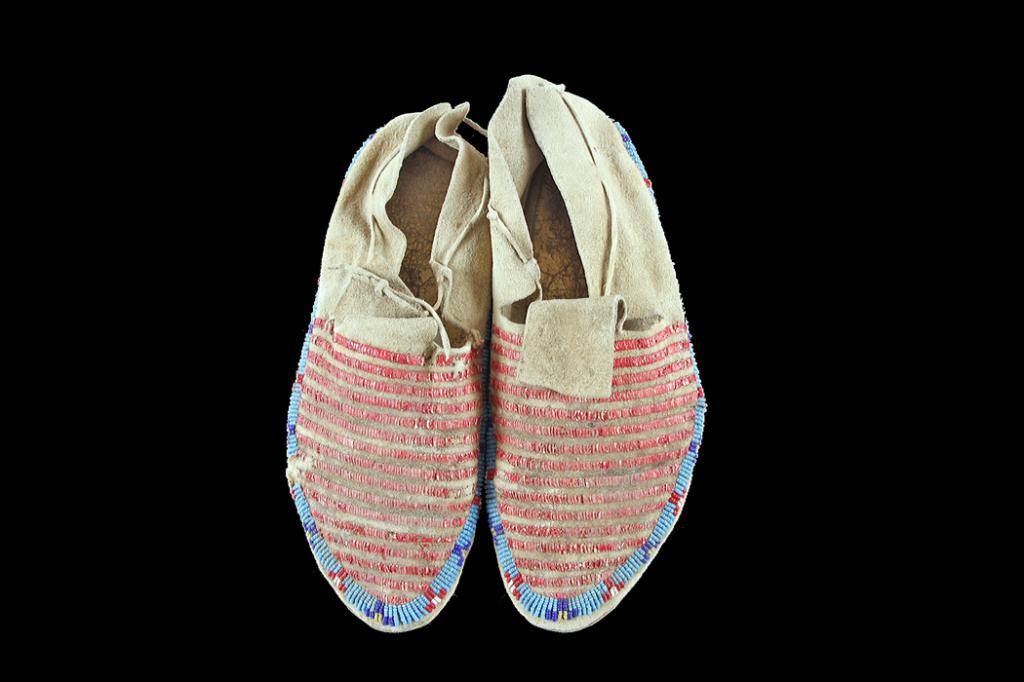 Men's Sioux Quilled Moccasins Decorated with seed beads.Decorated with seed beads.