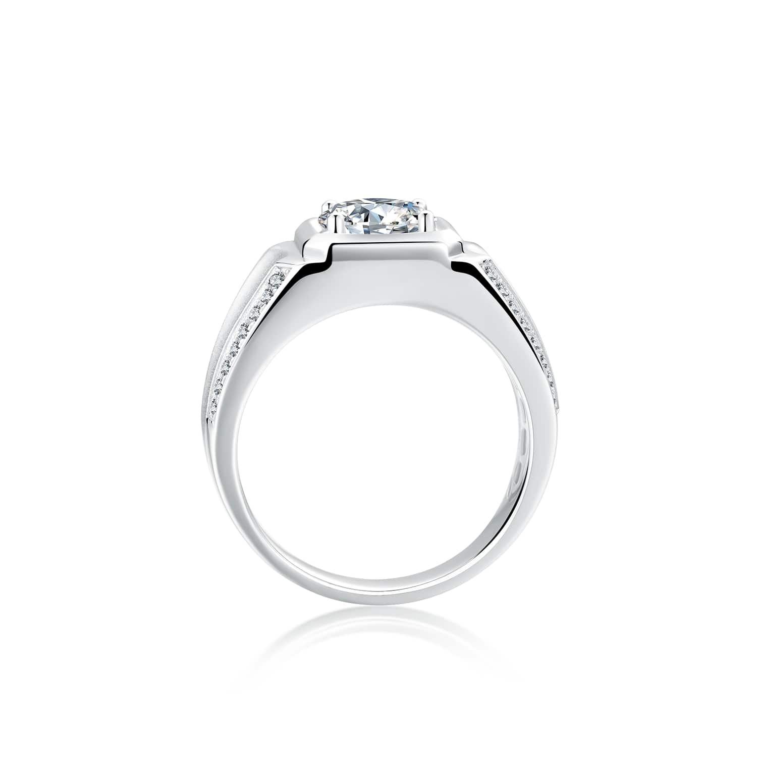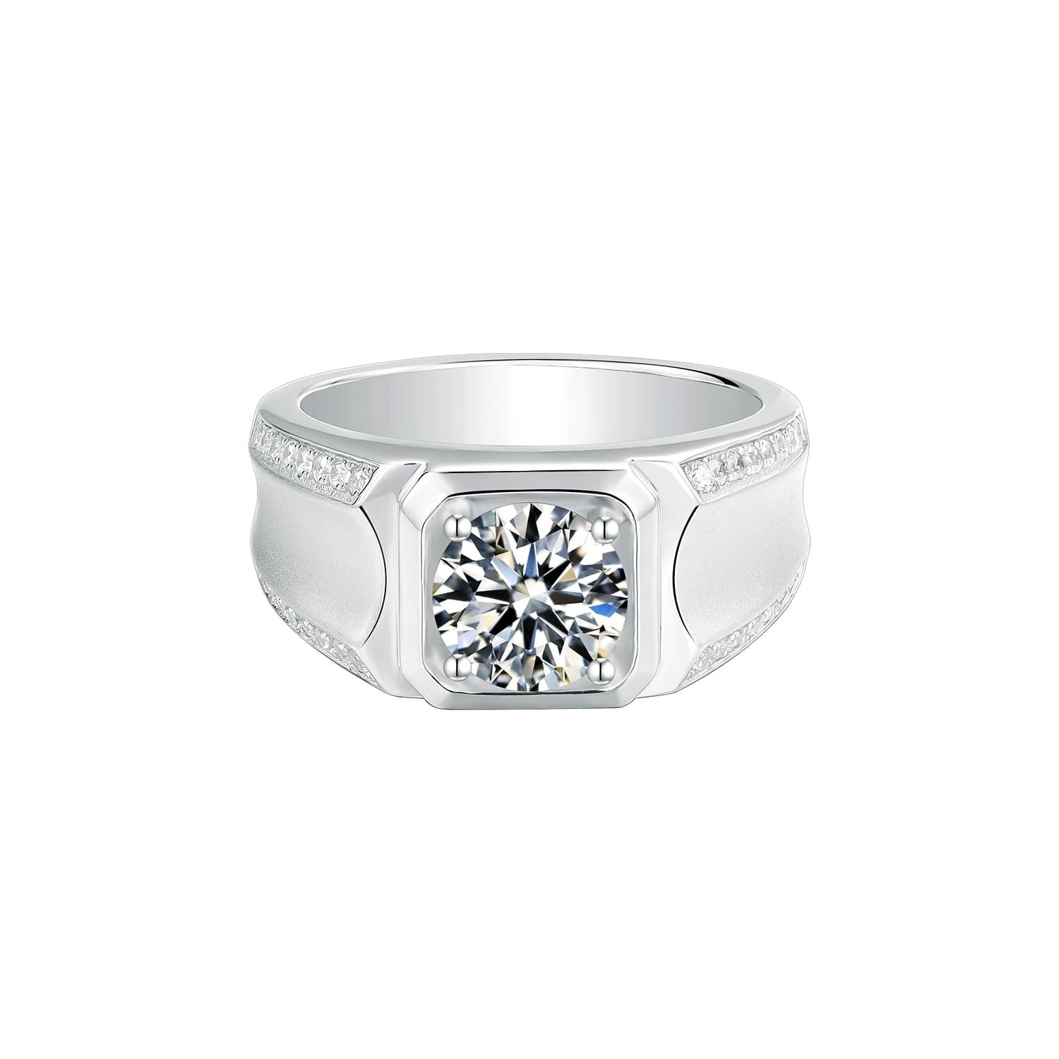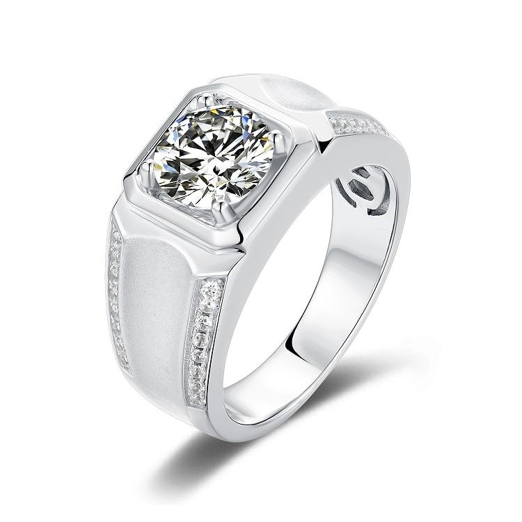 This Large 2 Ct Moissanite Centerstone is a VVS1 Brilliant Round 8 mm. Cut. The Color is White I-J. It is near flawless and bursting out with a full spectrum of colors. This Moissanite Ring is complimented with 32 individual 1.2 mm. moissanite accent stones. Mounted in .925 solid sterling silver with 14 Kt White Gold Overlay, which gives the ring its high polish and shine. Total gram wt. is approx 10 grams. With a refractive index of 2.65-2.69 exhibits more fire and brilliance than a natural diamond. Sized to order between 4 to 9.
