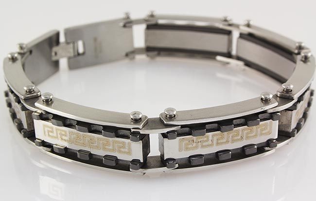 Men's Stainless Electroplated Bracelet 8 3/4" with Blac **|**|** Men's Stainless Electroplated Bracelet 8 3/4" with Black Plated ; MSRP: $200