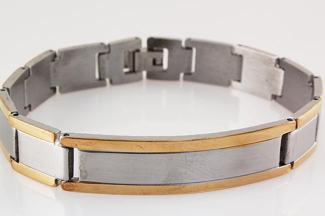 Men's Stainless Electroplated Bracelet 8 3/4" with Gold **|**|** Men's Stainless Electroplated Bracelet 8 3/4" with Gold Ion Plating ; MSRP: $200