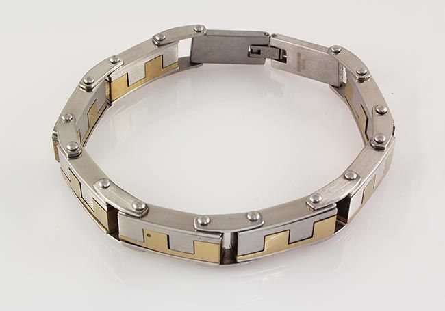 Men's Stainless Electroplated Bracelet 8 3/4" with Gold **|**|** Men's Stainless Electroplated Bracelet 8 3/4" with Gold Ion Plating ; MSRP: $200