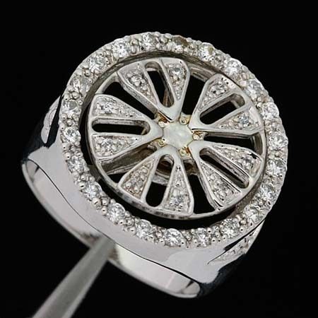 Men's Sterling Silver Cz Spinner Ring - Center Wheel Spins - Solid .925 Sterling Silver - Brilliant Round Cut White Cz's - Metal Stamp: .925 - No Tarnish Rhodium Plated Finish