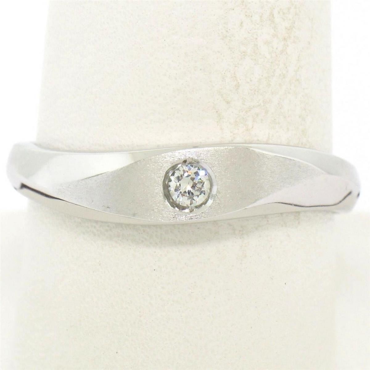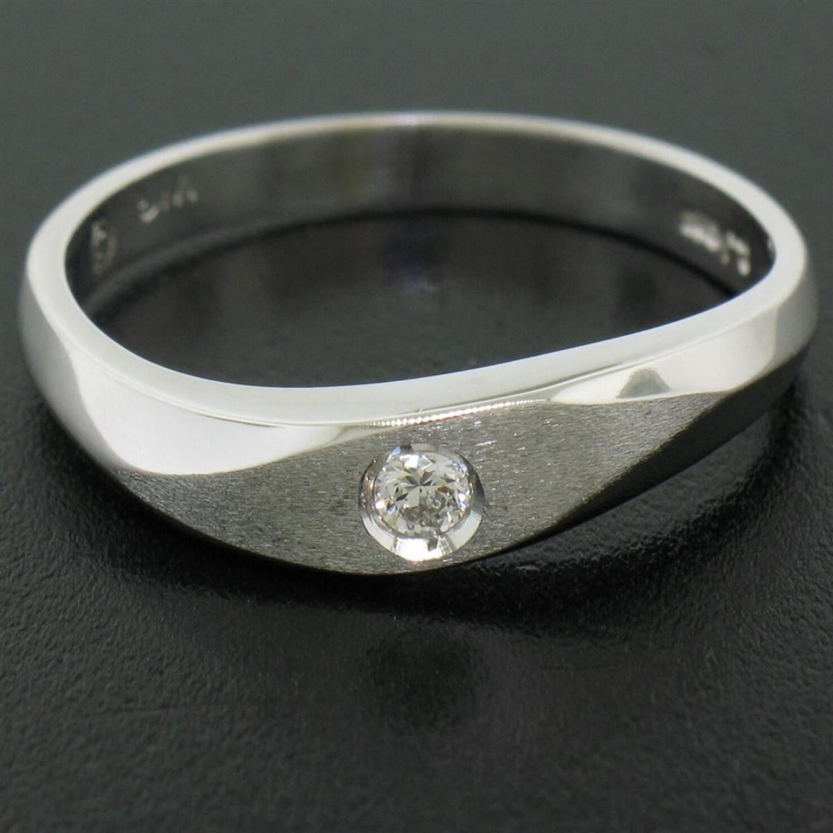 One Men's Textured 14K White Gold Bead Set Round Diamond Solitaire Band Ring Sz 9.5. Item Details: Material: 14K Solid White Gold, Weight: 2.89 Grams, Stone(s): (1) Natural Genuine Diamond - Round Brilliant Cut - Bead Set - VS1 Clarity - G Color - 0.09ct (approx.), Ring Size: 9.5 , Ring Width: 4.70mm, Ring Height: 2.95mm rise off the finger, Condition: Like New!,