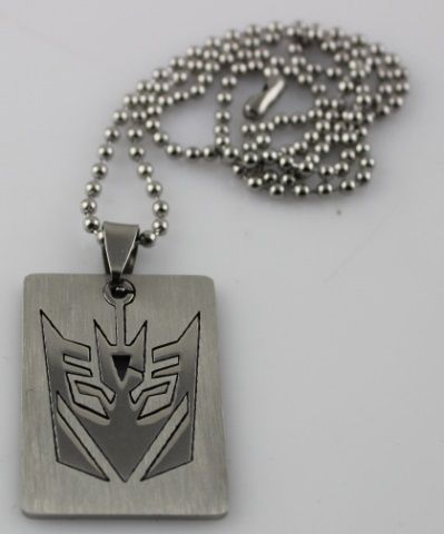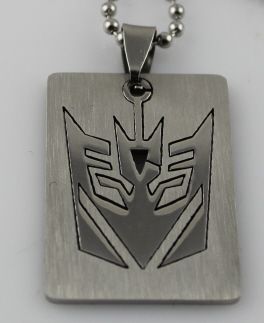 Men's Transformers stainless steel Decipticon dog tag with a polished finish on logo with a brushed outline. Valued at 69.00$