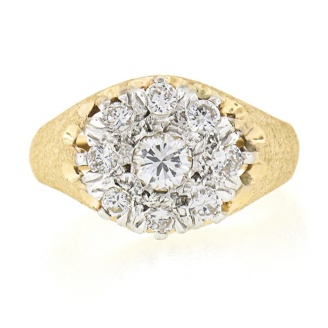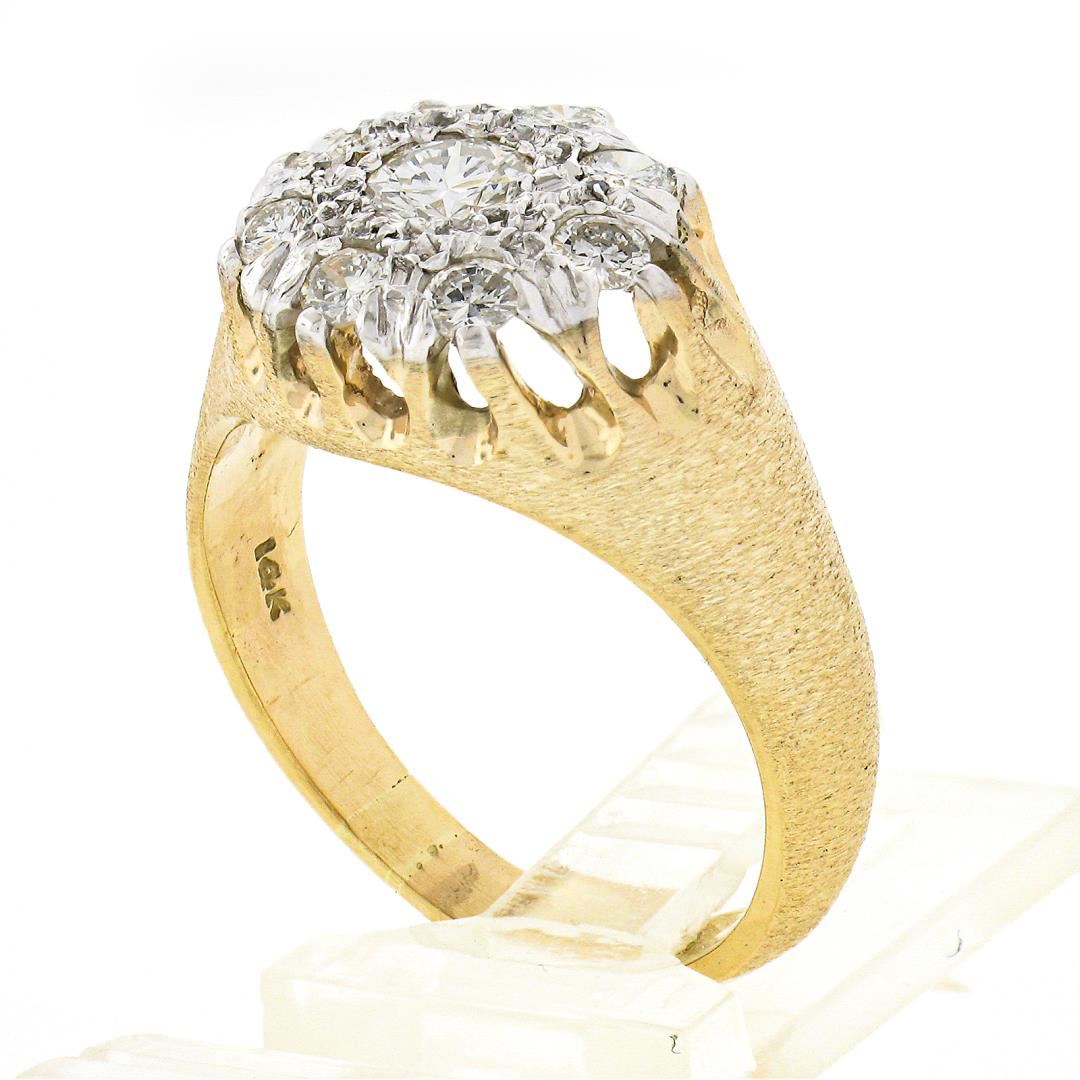 A vintage solid 14k yellow & white gold men's cluster ring, with 9 old transitional cut natural diamonds (H/I - VS2/SI1; 0.80ctw). The ring is size 10.0, weighs a total of 7.15 grams, and measures 13.20mm wide.