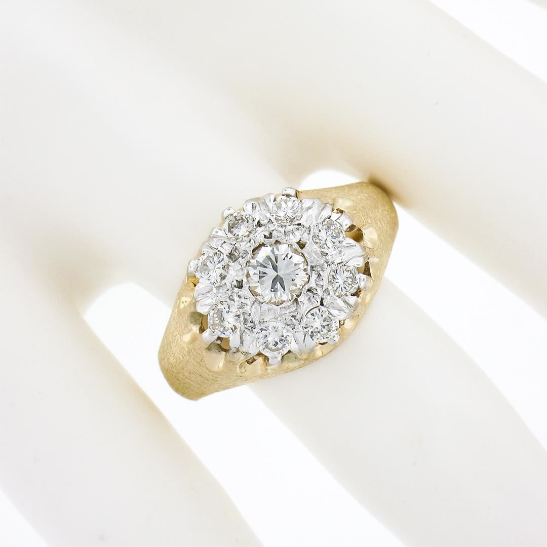 A vintage solid 14k yellow & white gold men's cluster ring, with 9 old transitional cut natural diamonds (H/I - VS2/SI1; 0.80ctw). The ring is size 10.0, weighs a total of 7.15 grams, and measures 13.20mm wide.