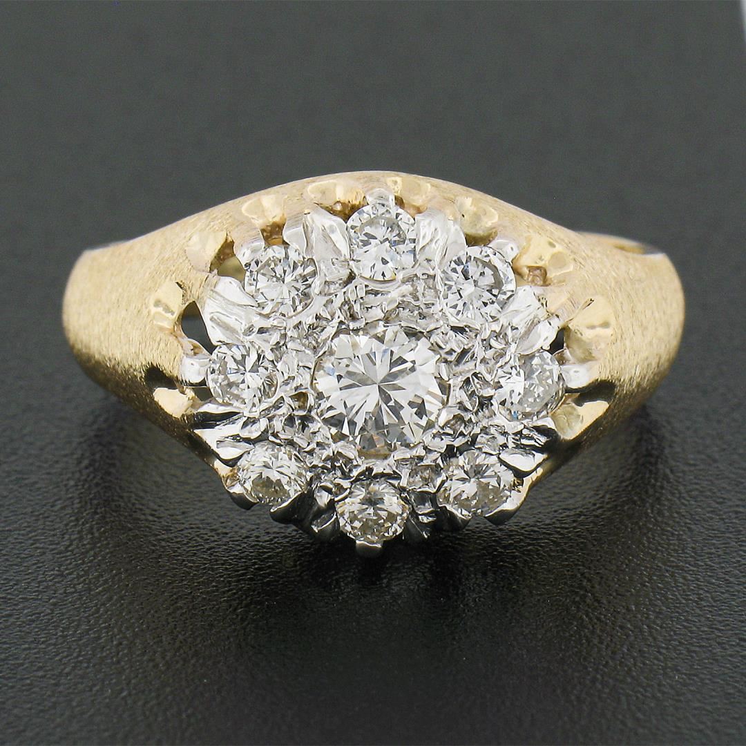 A vintage solid 14k yellow & white gold men's cluster ring, with 9 old transitional cut natural diamonds (H/I - VS2/SI1; 0.80ctw). The ring is size 10.0, weighs a total of 7.15 grams, and measures 13.20mm wide.