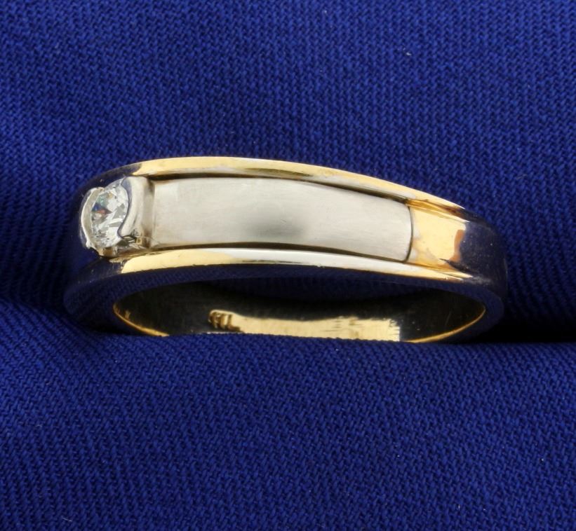 In 14k yellow gold. Contains a 1/4 ct high quality diamond with a VS clarity and G color. Size 11 1/2. 9.0g.