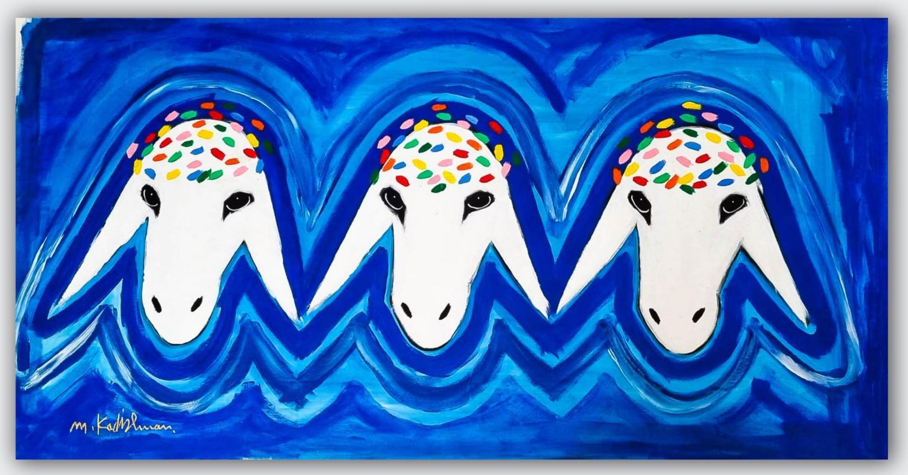 Artist: Menashe Kadishman. Medium: Original Acrylic on Canvas. Title: Untitled. Size (Unframed): 36" x 65". Certificate of Authenticity: Is included. Additional: Stretched and ready to hang. Reference# 16224.