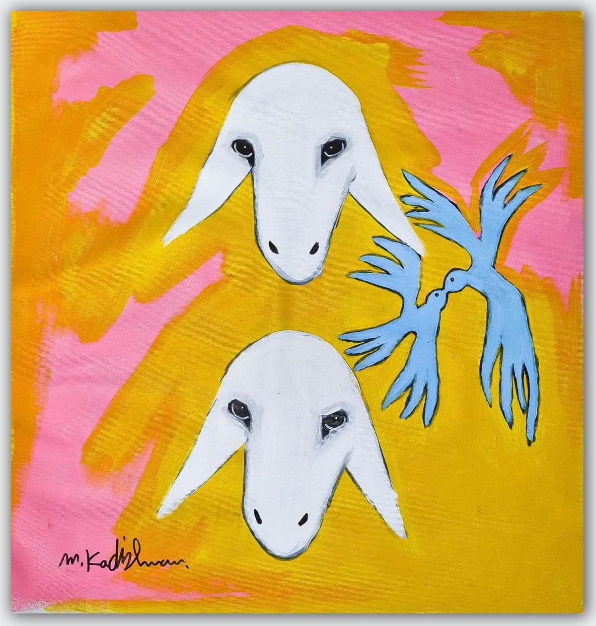 Artist: Menashe Kadishman. Medium: Original Acrylic on Canvas. Title: Untitled. Size (Unframed): 24" x 21.5". Certificate of Authenticity: Is included. Additional: Stretched and ready to hang. Reference# 16228.