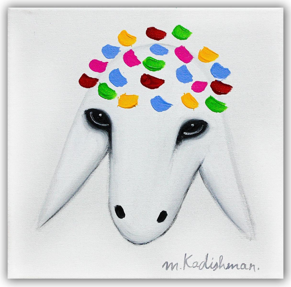 Artist: Menashe Kadishman. Medium: Original Acrylic on Canvas. Title: Untitled. Size (Unframed): 12" x 12". Certificate of Authenticity: Is included. Additional: Stretched and ready to hang. Reference# 17174.
